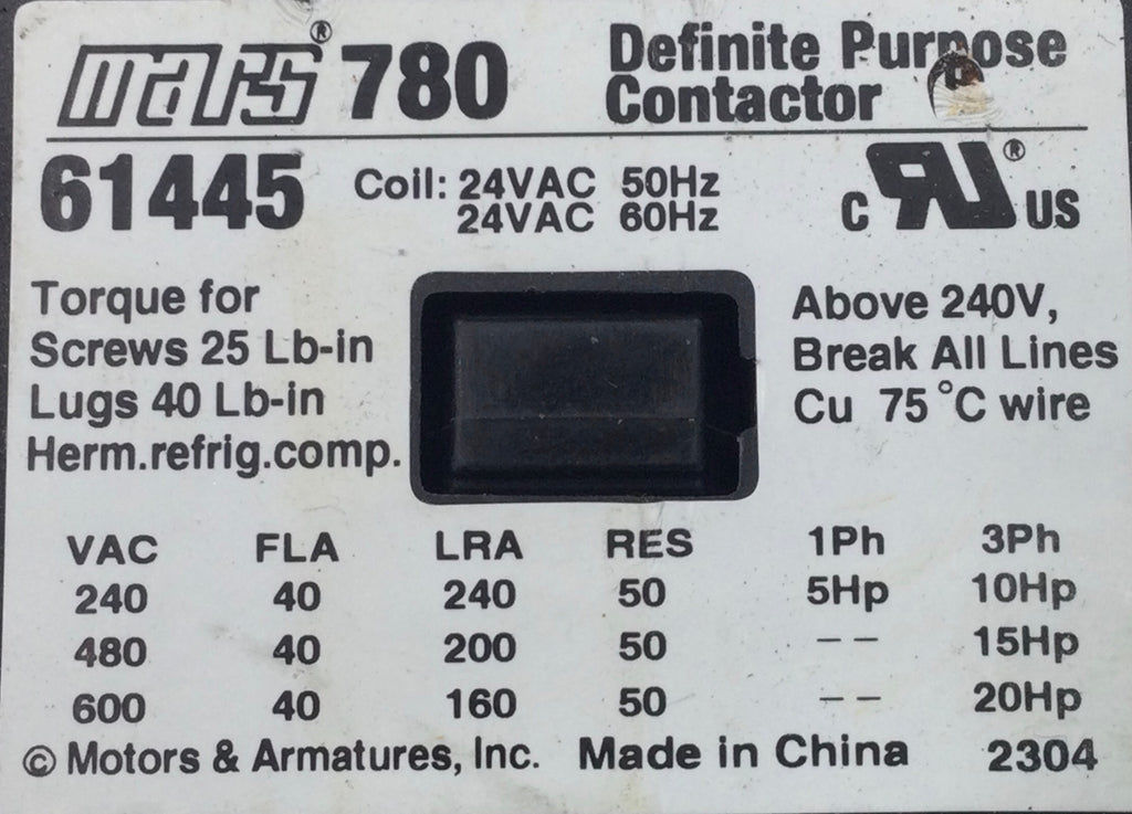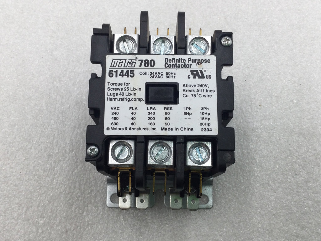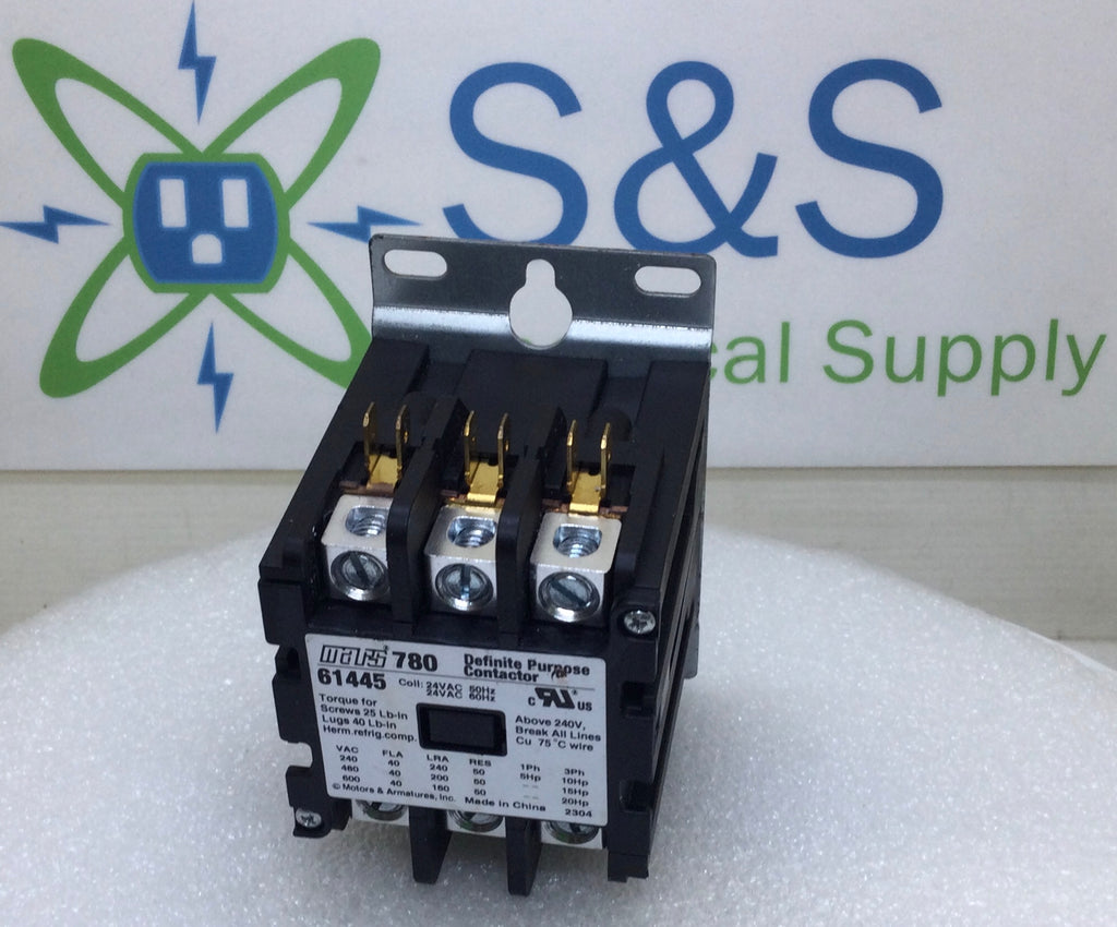 Mars 780 61445 50 Amp 3 Pole 600V Definite Purpose Contactor w/24vac Coil