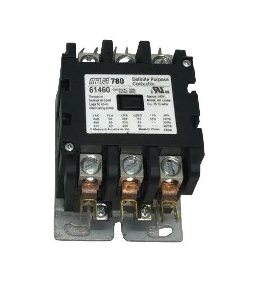 Mars 780 61460 50 Amp 3 Pole 208/240V Definite Purpose Contactor w/24vac Coil