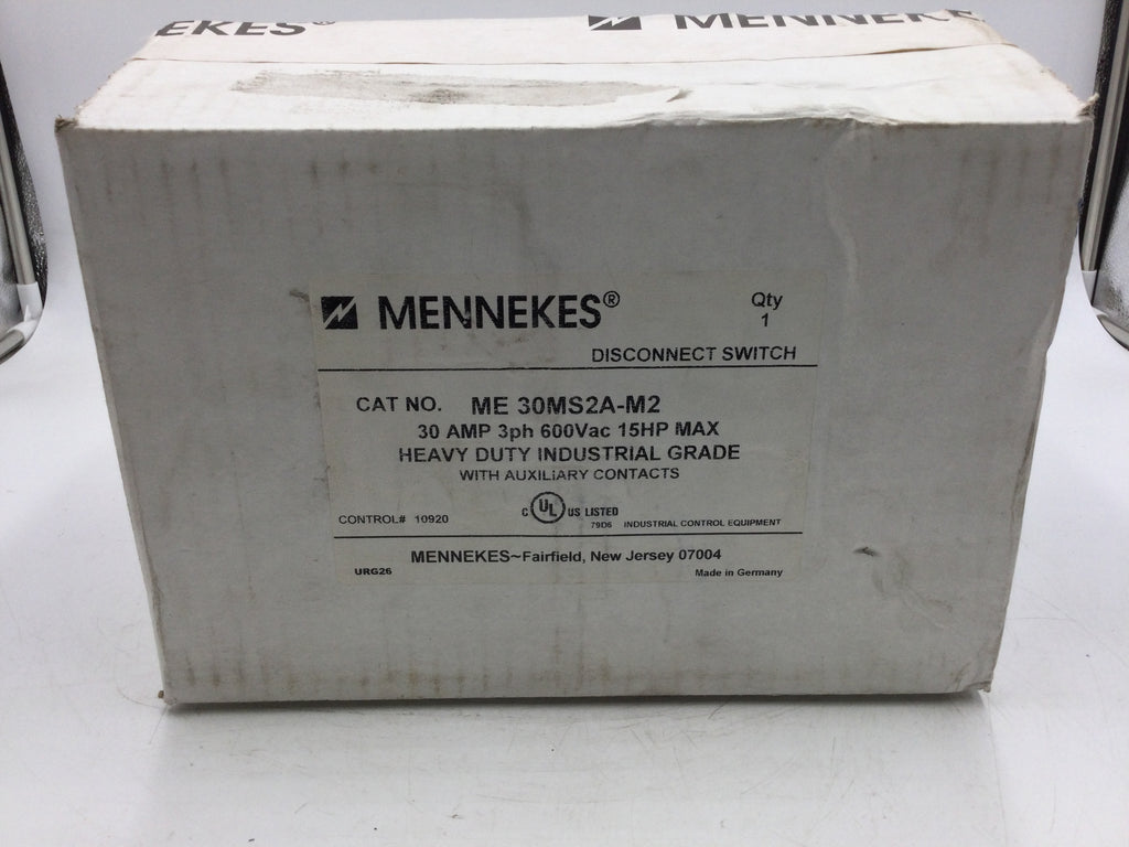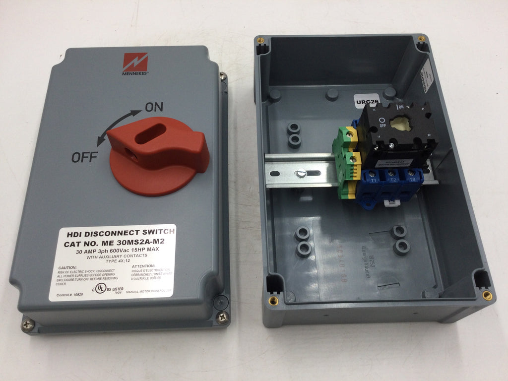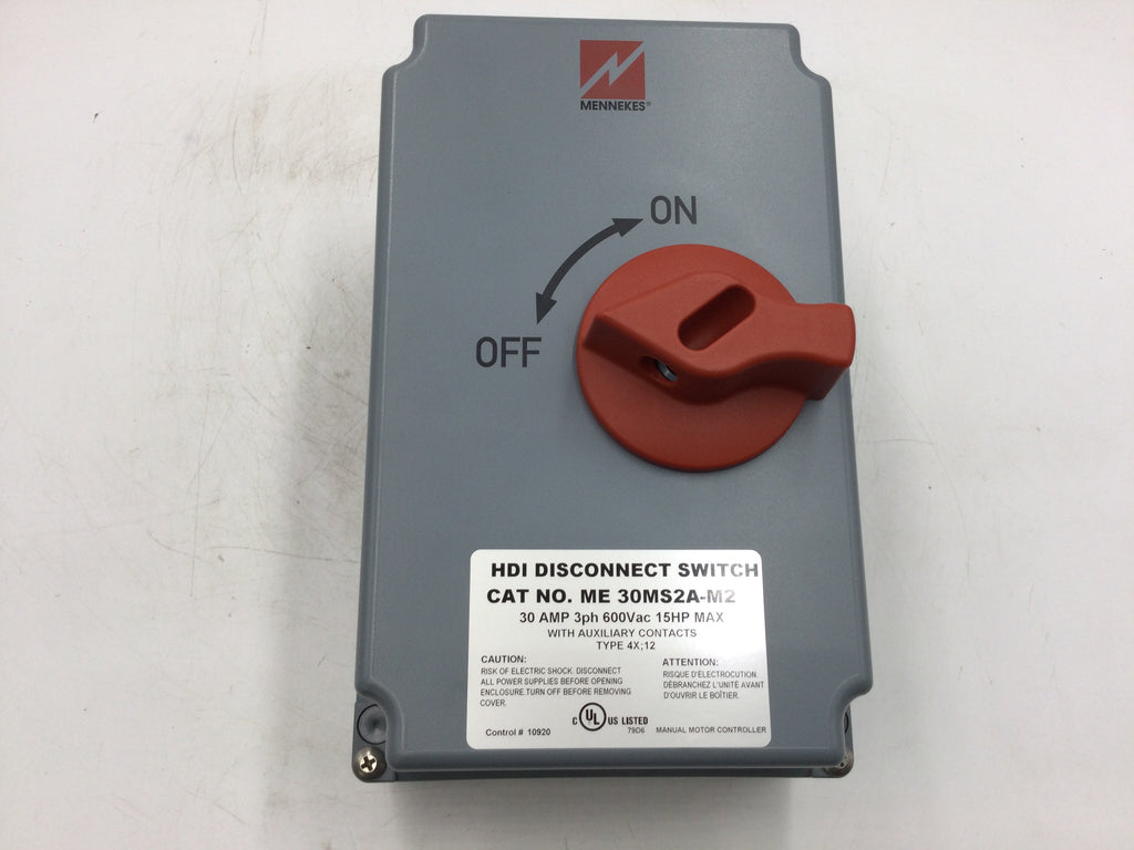 The Mennekes ME30MS2A-M2 HDI Disconnect Switch is a reliable heavy-duty switch with a maximum load of 15 horsepower, suitable for industrial applications with a 30A, 600V load. It meets all safety standards, making it a reliable choice.