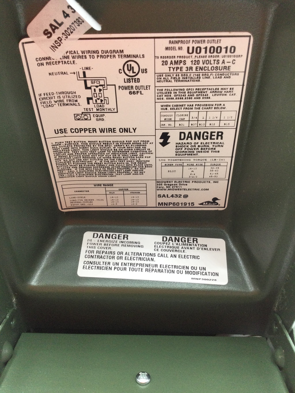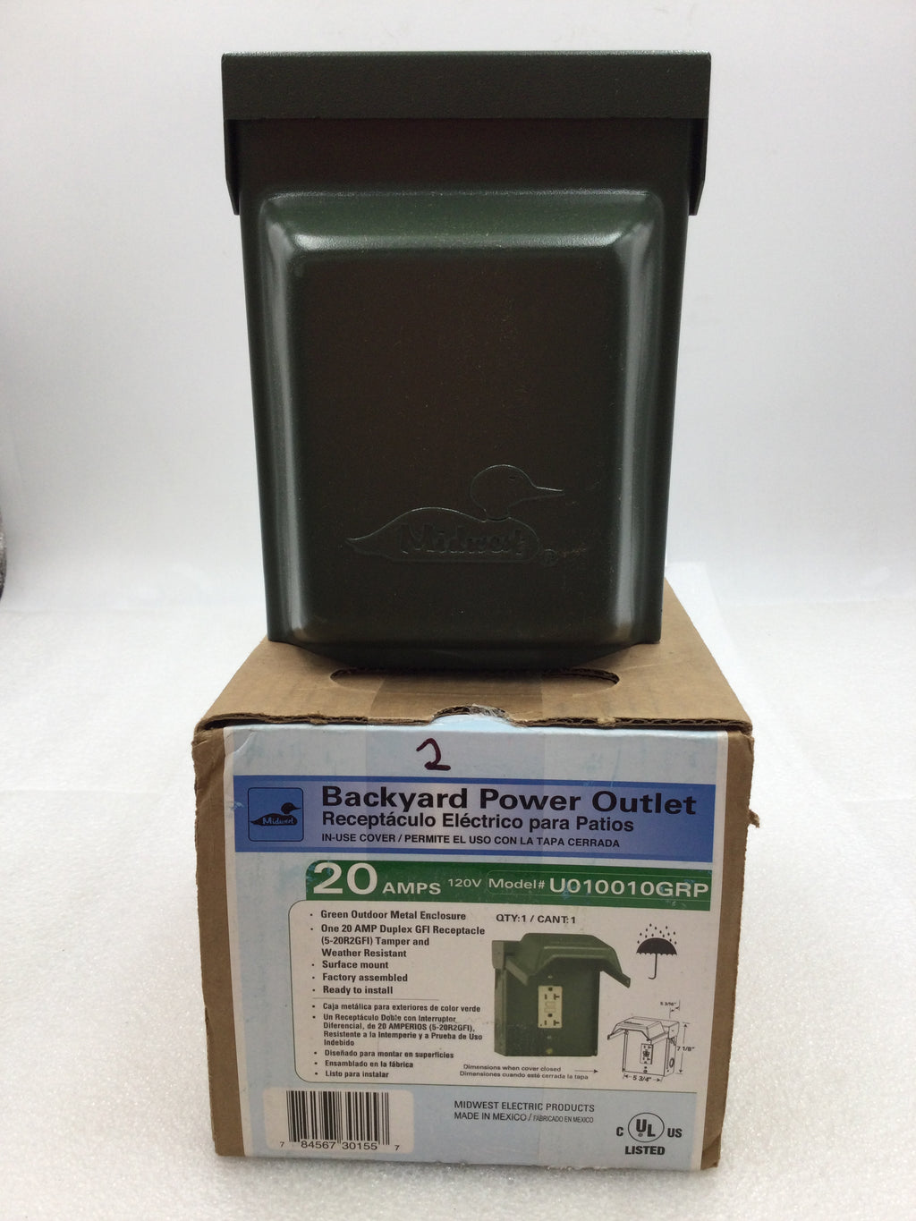 Midwest Backyard Power Outlet 20 Amps U010010GRP Receptacle 120/240V Surface Mount
