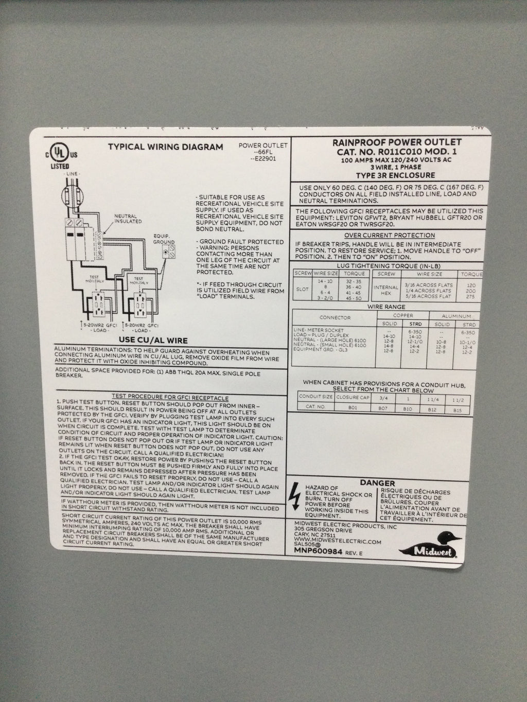 Midwest R011C010 100 Amp Single Phase 120/240V Load Center - Cosmetic Flaw
