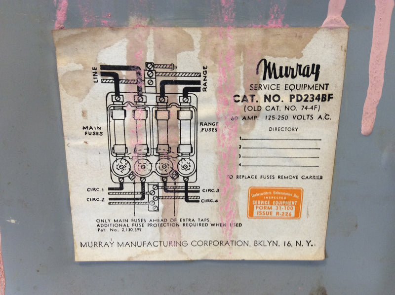 Murray PD234BF 60 Amp 125-150v Panel Cover
