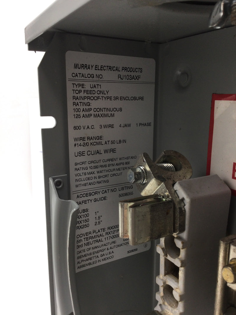 Murray RJ103AXF 125 Amp 1 Phase 3 Wire 4 Jaw 600v Nema 3R Type UAT1 Meter Enclosure