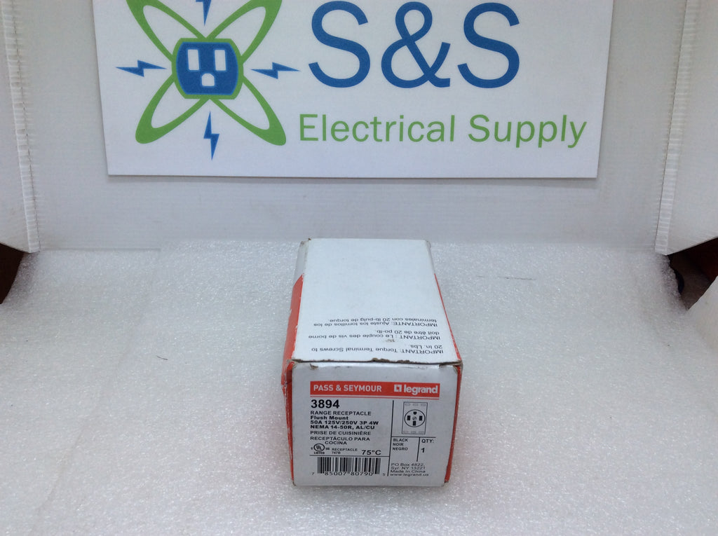 This Pass & Seymour 3894 50A 125/250V 3P 4W Nema 14-50R Flush Mount Range Receptacle is a durable, long-lasting and reliable product made to last. With its 4-wire, 50-amp, 3-pole configuration, this receptacle confidently meets UL and NEMA standards while offering maximum protection with minimal space requirements.