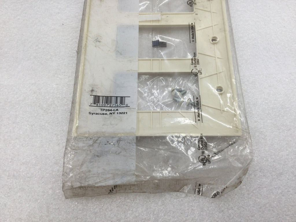 The Pass & Seymour TP264-LA is a four-gang wall plate engineered for durability and professional appearance. Constructed from unbreakable material, it resists cracking and damage from impact or accidental drops. The Decora style design accommodates standard Decora-format switches and outlets, making it ideal for modern residential and commercial installations. Light Almond finish complements various décor schemes while maintaining a clean, finished look. This plate meets industry standards for electrical safety and provides reliable protection for your wall openings.