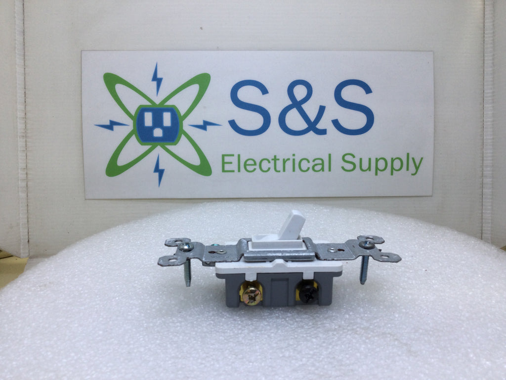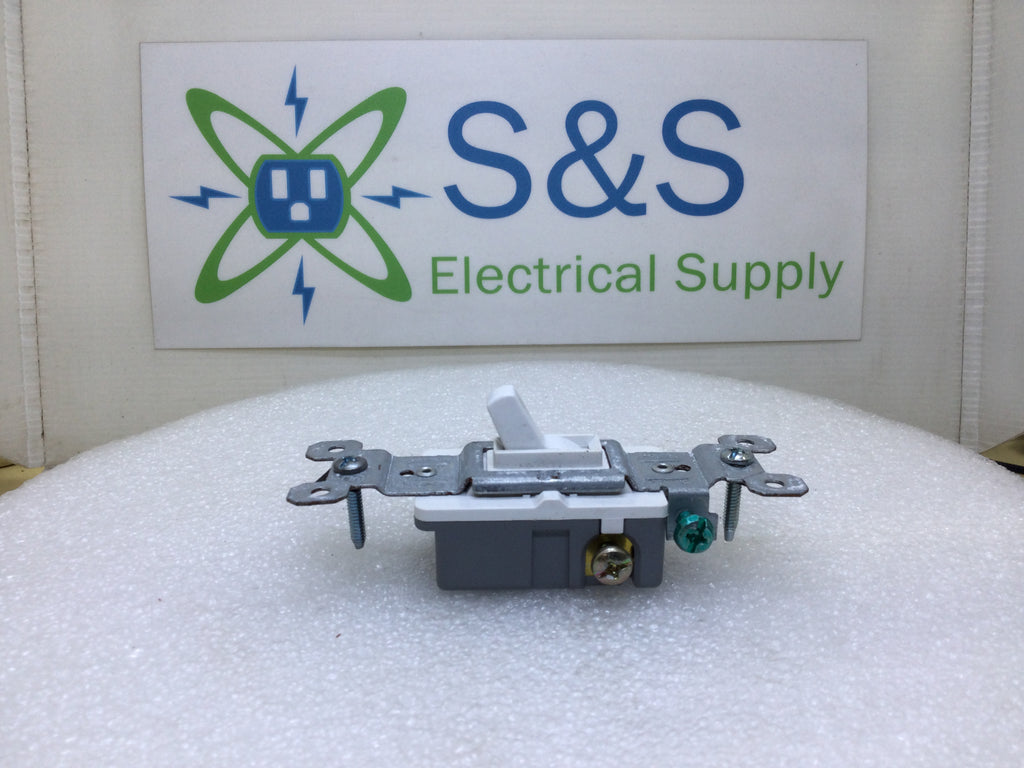 The Pass & Seymour 663-WG 3-way light switch is rated for 15 Amp and 125 VAC, designed for reliable multi-location lighting control. Its white finish offers a clean, professional appearance suitable for residential and commercial installations. Sold in a convenient box of 10, this switch ensures durability and consistent performance for various lighting setups.