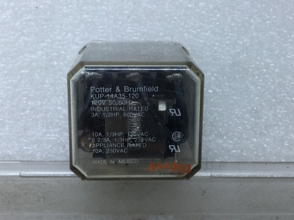 Potter & Brumfield KUP-14A35-120 120V 50/60Hz 11 Blade Industrial Rated 3A, 1/2hp, 600VAC 10A, 1/3hp, 120VAC 6 2/3A 1/3hp 250VAC Appliance Rated 10A, 250VAC Ice Cube Relay