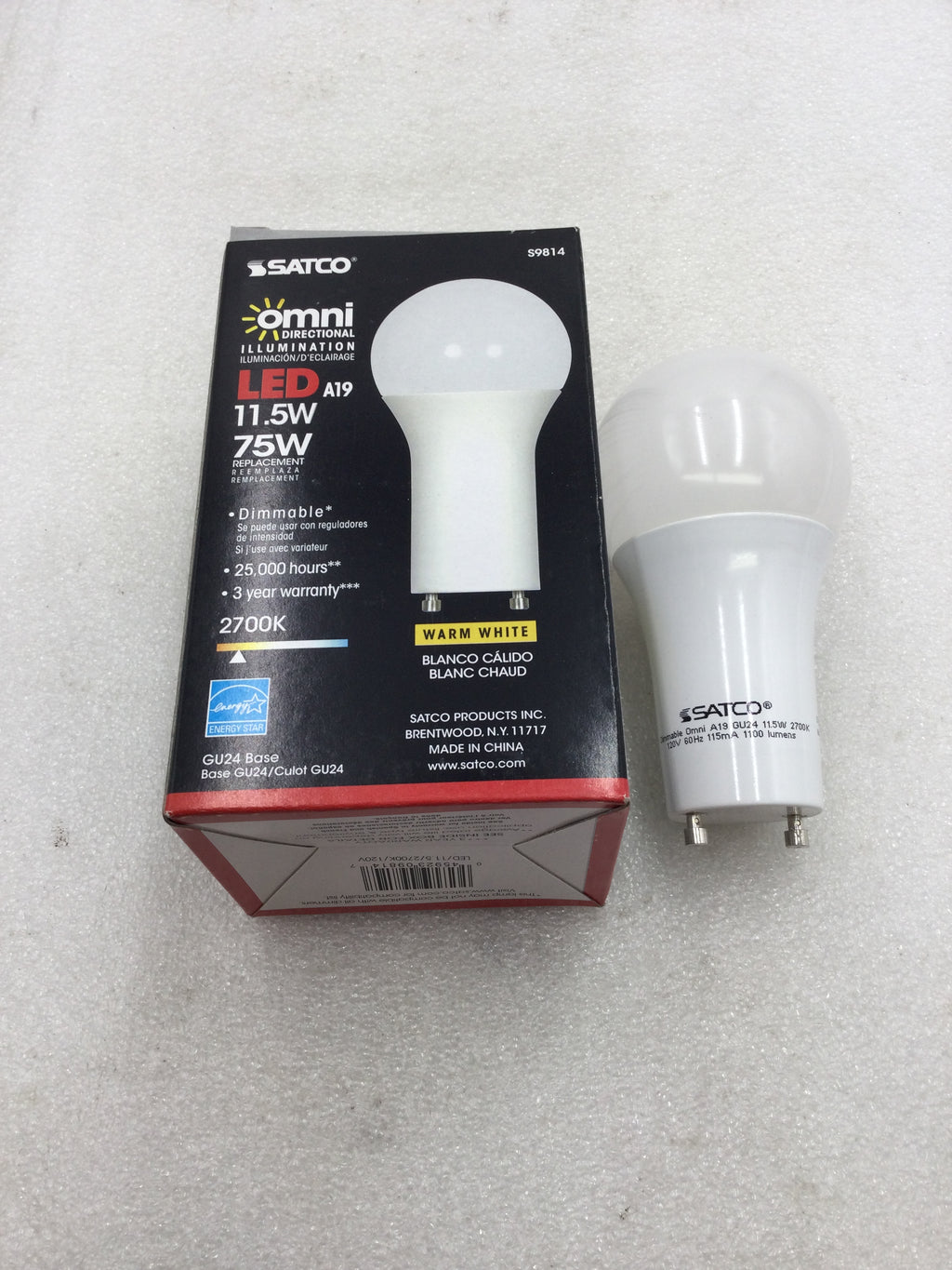 Introducing the Satco S9814 Omni Directional A19 Style LED Lamp, the perfect energy-efficient and long-lasting lighting solution for your home or office. With 11.5 watts and 120 volts, this lamp produces 1100 lumens of warm white light (2700k), providing a bright and inviting atmosphere. Trust Satco, a leader in the industry, for all your lighting needs.