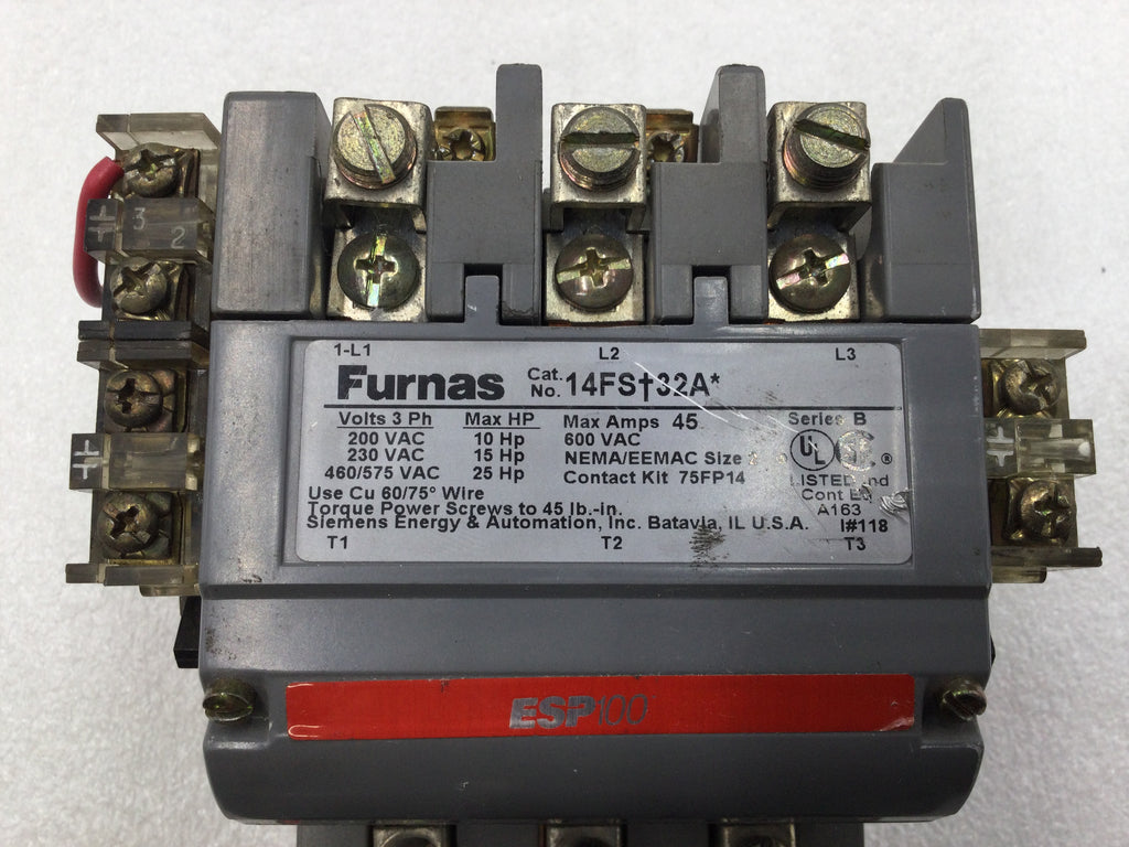 Siemens 14FS+32A 45 Amp 3 Pole 200-575V 10-25 HP Motor Starter w/ 120 VAC Coil