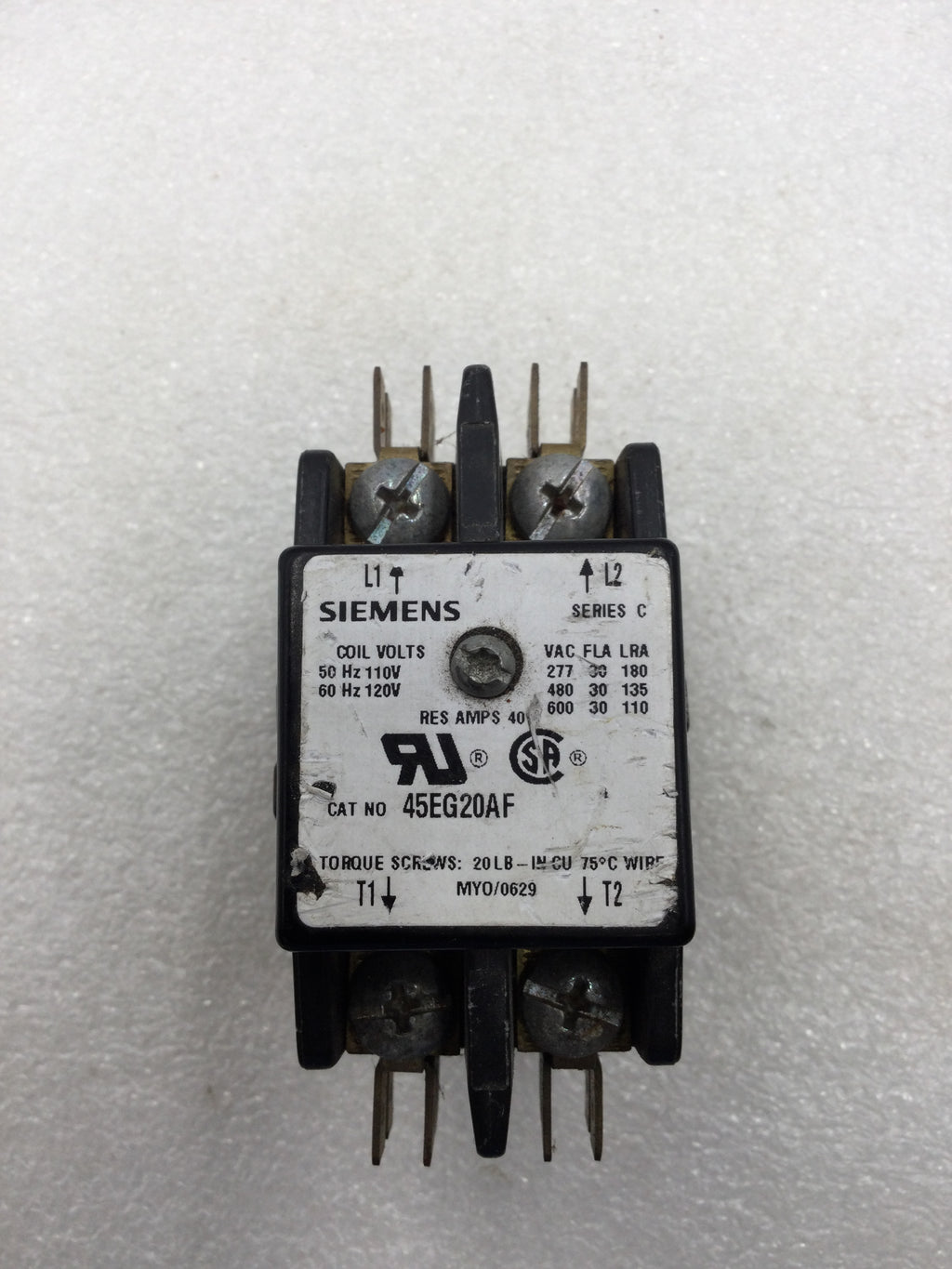 Siemens 45EG20AF 30 Amp 2 Pole 277-600V Definite Purpose Contactor w/120V Coil