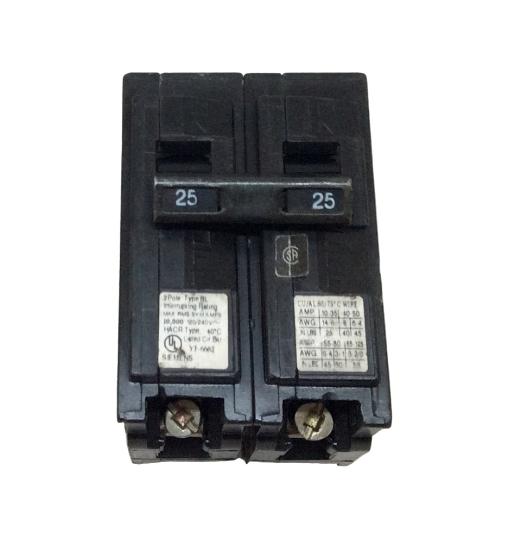 Siemens B225 25 Amp 2 Pole 120/240V Type BL Bolt On Circuit Breaker