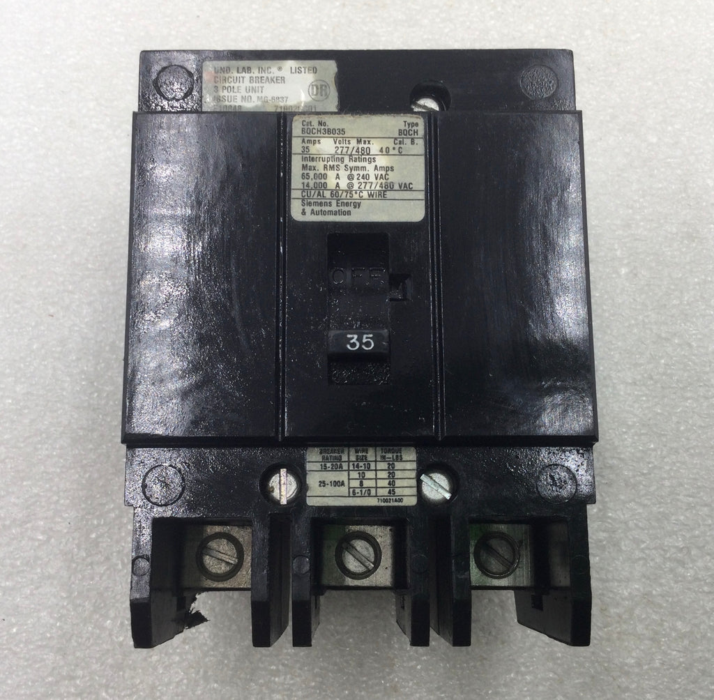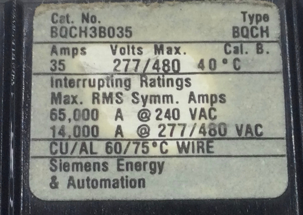 This Siemens BQCH3B035 circuit breaker provides reliable 35 Amp, 3-pole protection for 277/480V electrical systems. Designed for commercial and industrial use, it ensures safe and efficient power management.