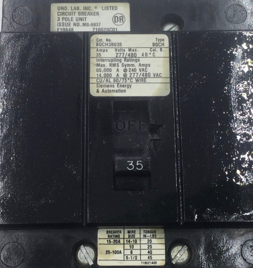 Siemens BQCH3B035 35 Amp 3 Pole 277/480V Type BQCH Circuit Breaker