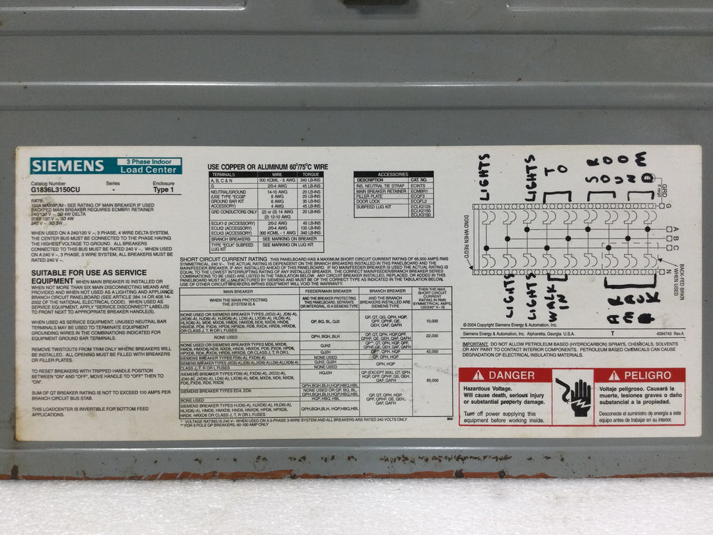 The Siemens G1836L3150CU is a durable load center cover designed for 150 Amp, 120/240V electrical panels. Measuring 20 1/2" by 11", it provides a secure and precise fit to protect internal components while maintaining easy access for maintenance. This cover ensures safety and compliance in residential or commercial electrical installations.