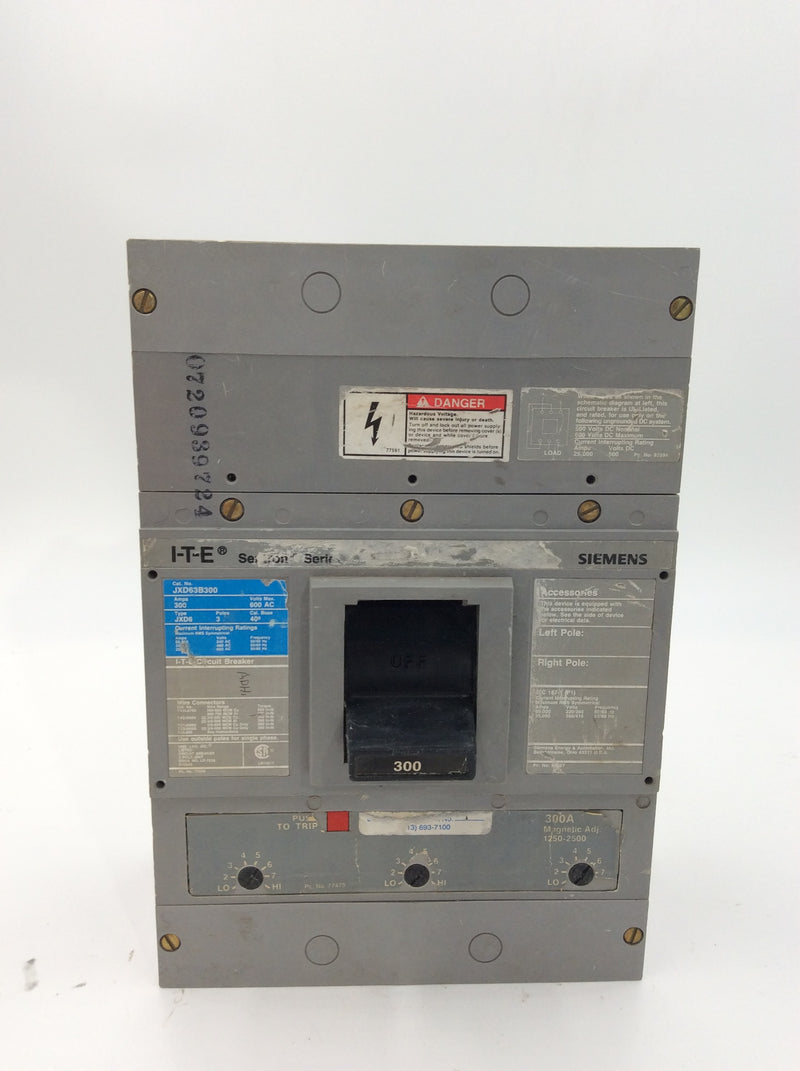 Siemens JXD63B300 300 Amp 3 Pole 600v Circuit Breaker
