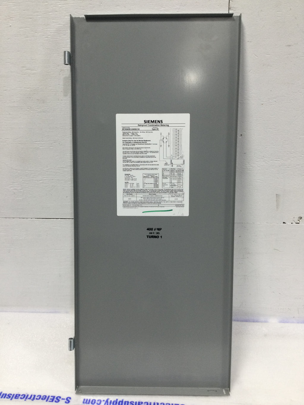 Siemens MC4040B1200SECW hinged cover replacement for 200 amp, 40-space electrical panels. Dimensions: 32 1/8" x 13 3/4". Engineered to meet UL standards and provide secure access to circuit breaker compartments. Compatible with Siemens MC4040 series enclosures. Essential component for panel maintenance, upgrades, or damage replacement. Durable steel construction ensures long-term reliability in residential and commercial installations.
