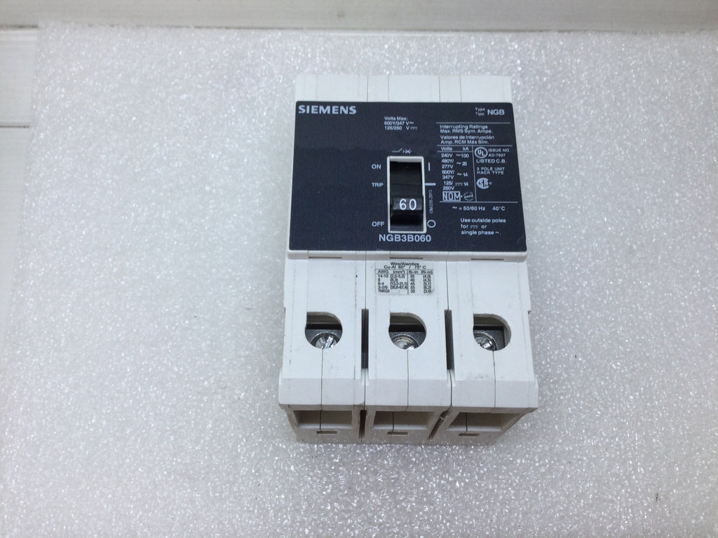 Siemens NGB3B060 60 Amp 3 Pole 600V Circuit Breaker