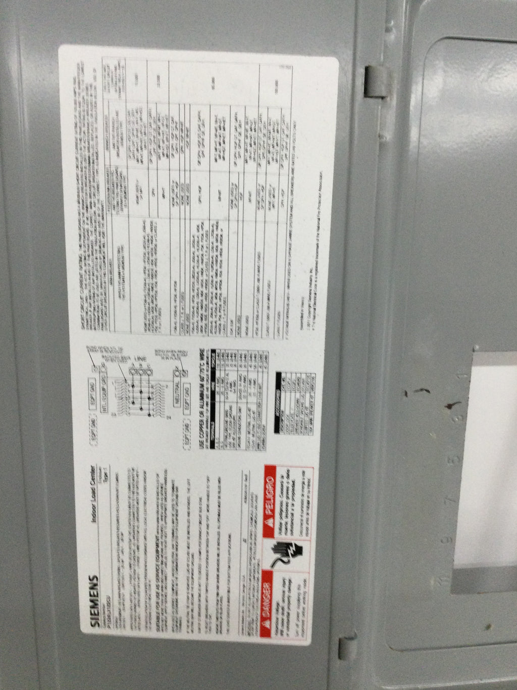 Siemens P1224L3125CU 125 Amp 12 Space 24 Circuit 3 Phase Main Lug Load Center Cover Only 22.25" x 15.5"