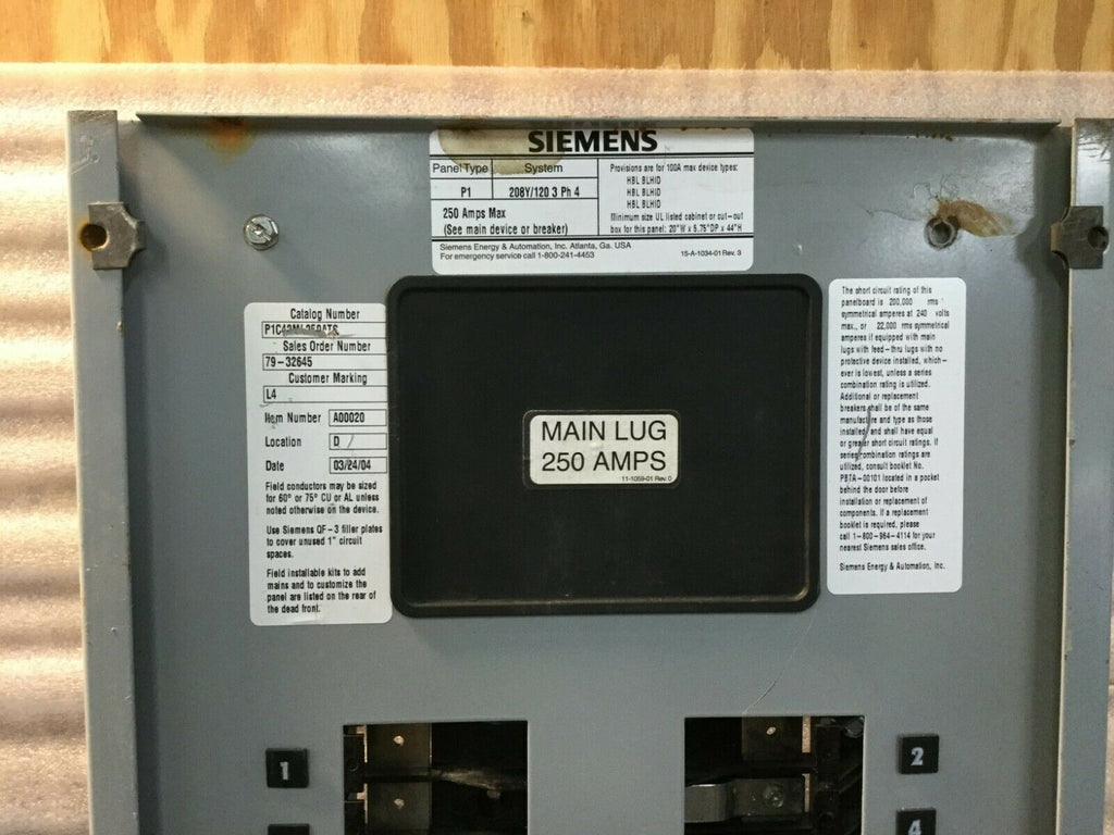 Siemens P1C42ML250ATS 250A 42 Space 120/240V Guts & Dead Front 36 3/4" x 13 3/4"