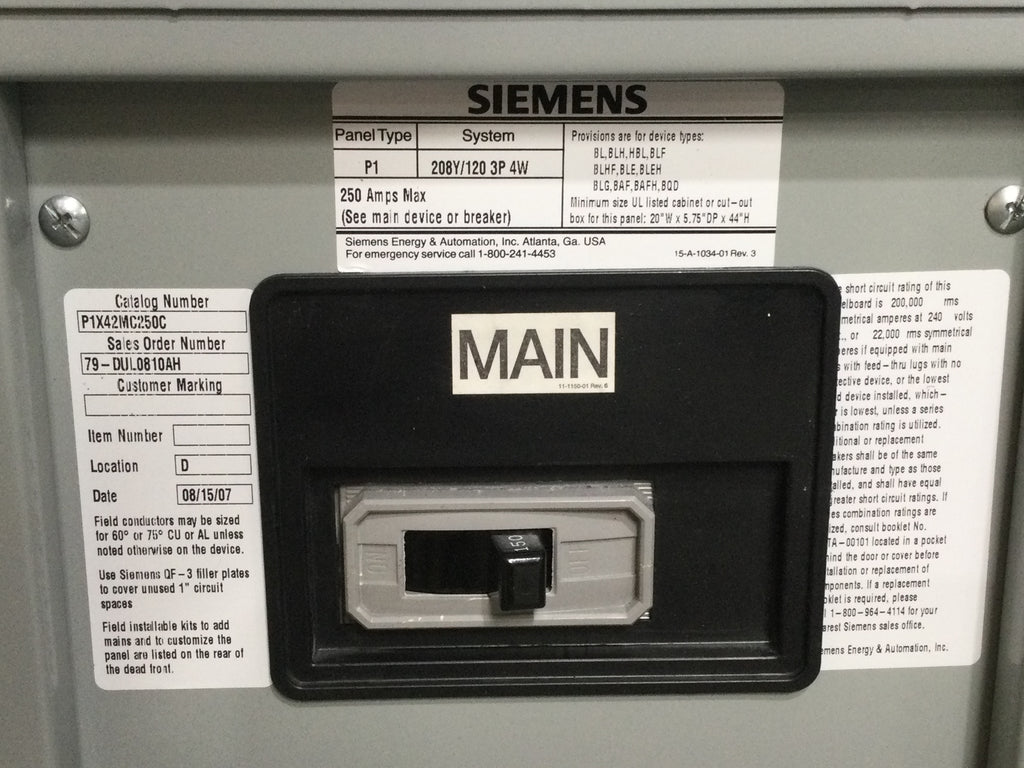 Siemens P1X42MC250C 250 Amp 208y/120 3 Pole 4 Wire Panel Board Interior 42 Circuit Panelboard