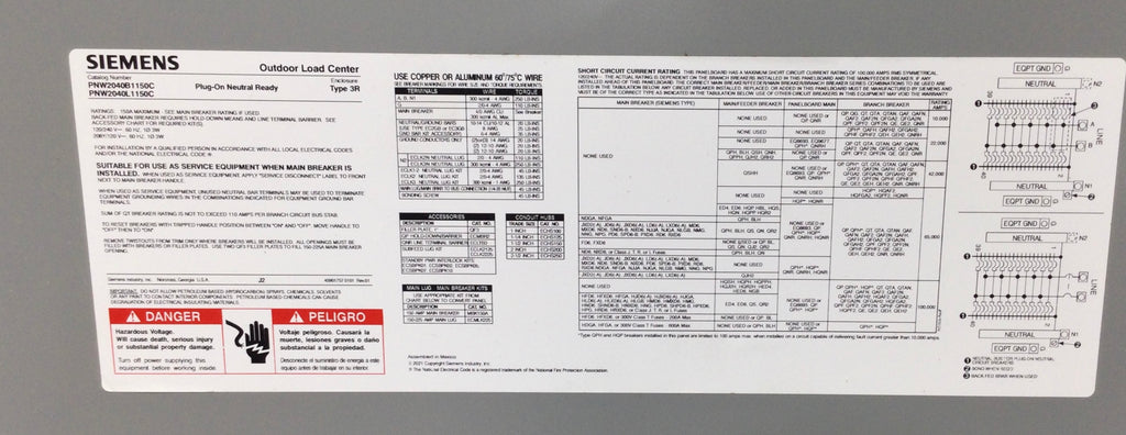 Siemens PNW2040B1150C 150 Amp 120/240V Load Center Cover/Door Only