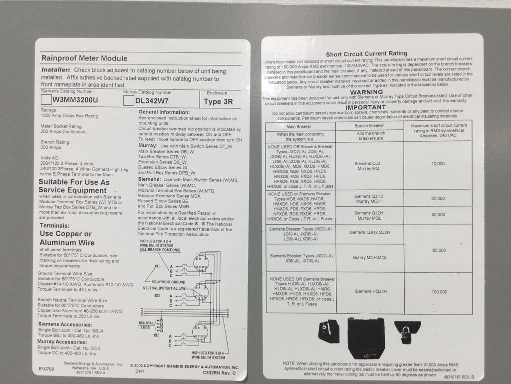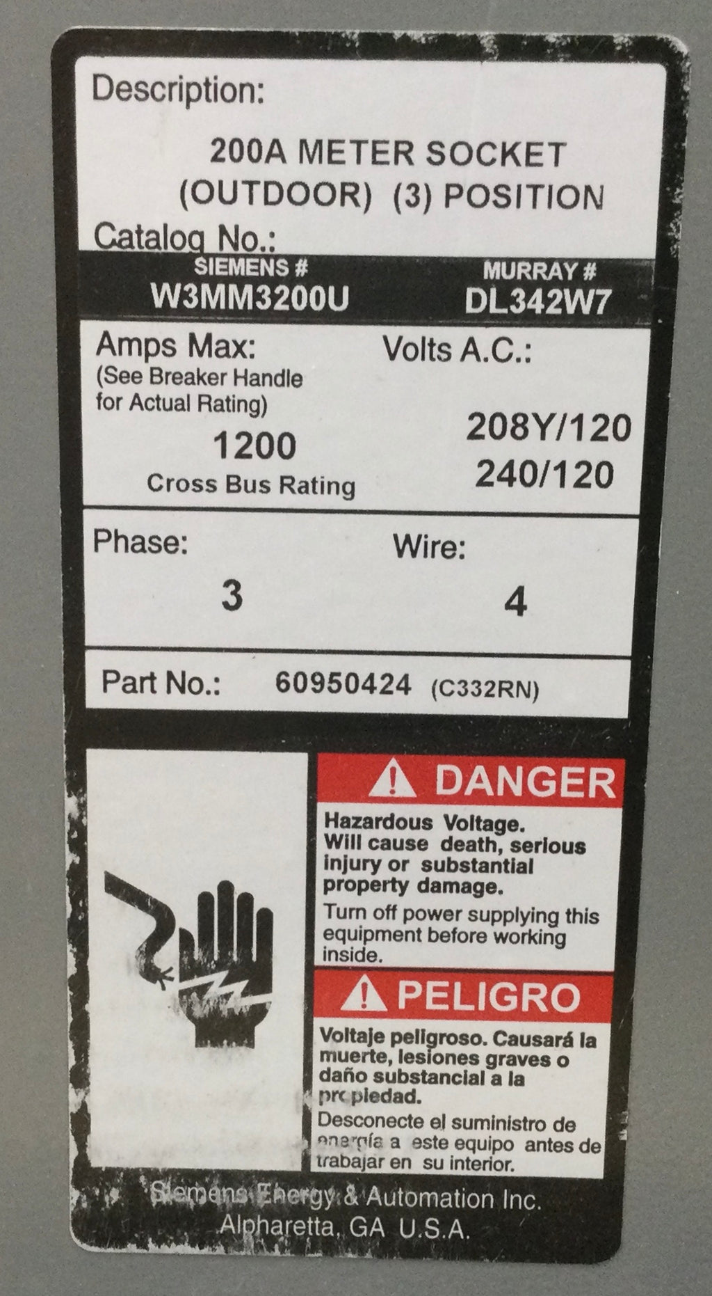 This Siemens 3-phase meter-socket panelboard is perfect for high powered electrical needs, with a 1200 amp capacity and 240V capability. Featuring expert craftsmanship from a trusted industry leader, this panelboard offers reliable and efficient performance for your electrical needs.