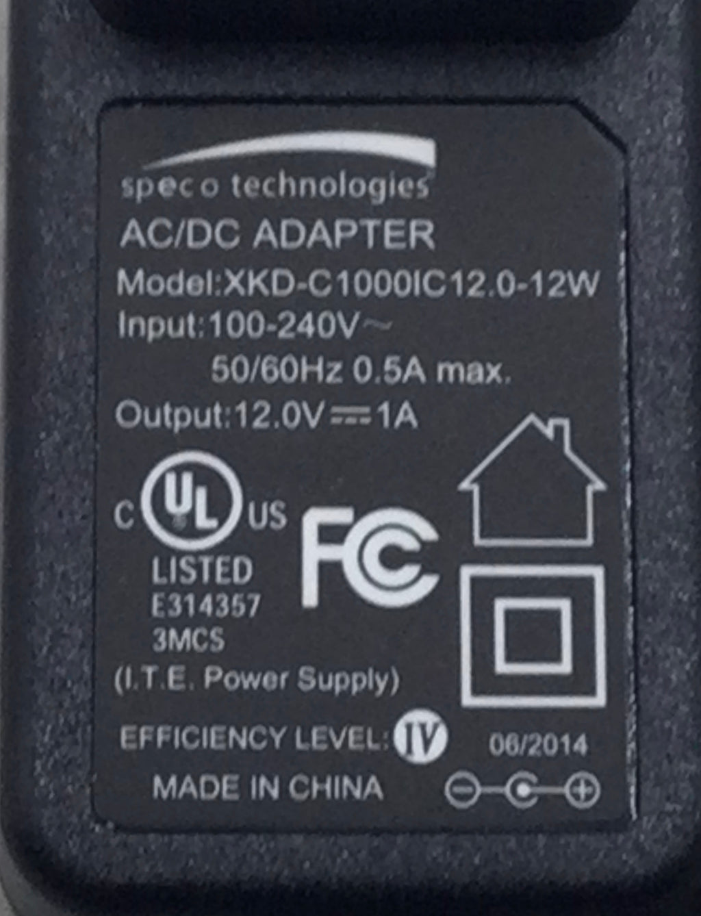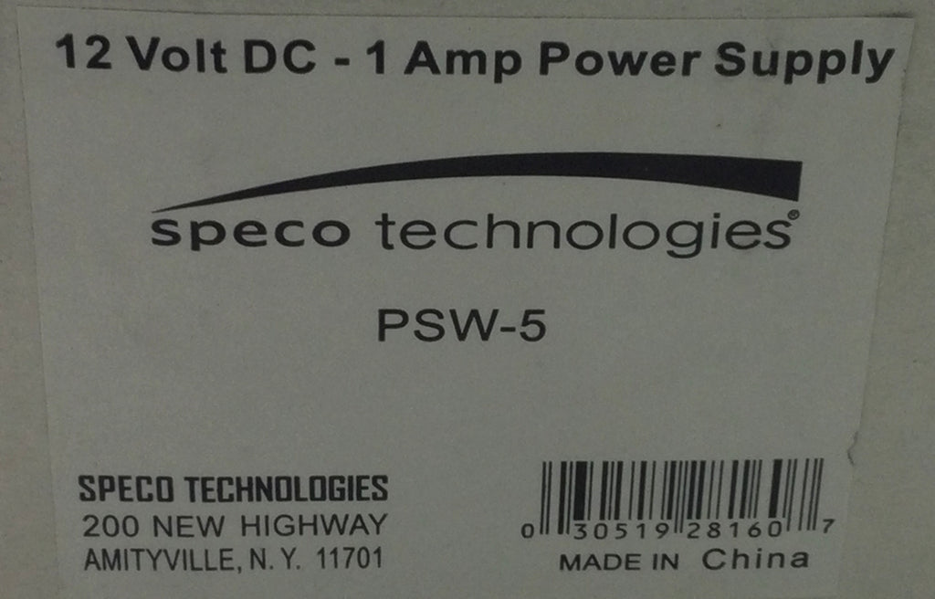 Speco Technologies PSW-5 1 Amp 50/60Hz 12-240V Wall Plug Power Supply