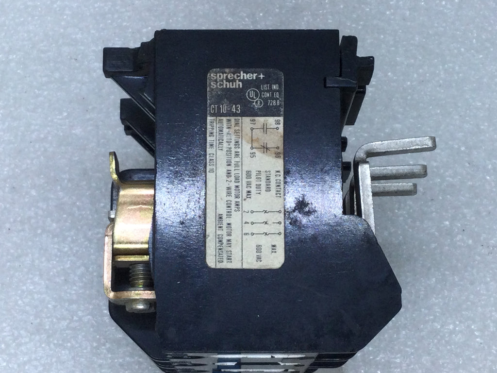 Sprecher+Schuh CT10-43 Thermal Overload Relay Max Fused 100A Max Circuit Breaker 60A 600VAC
