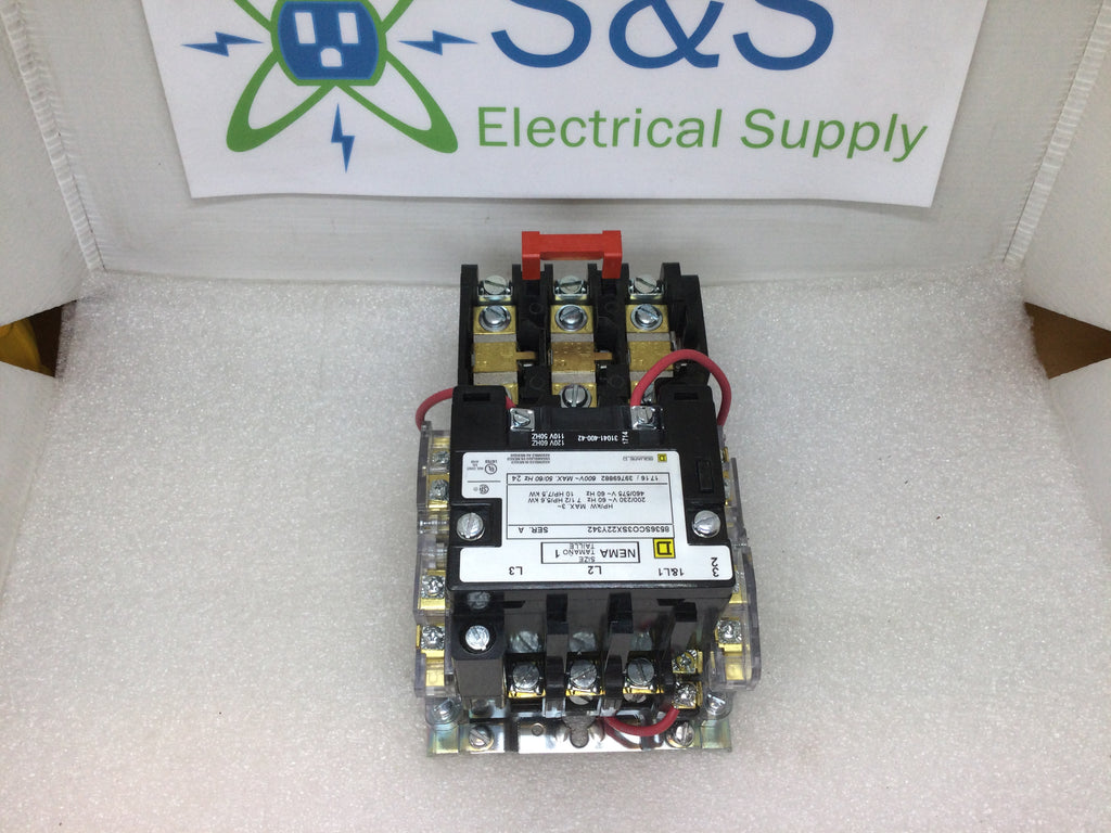 Square D 8536SCO3SX22Y342 3 Pole 32A 600VAC Max Nema Size 1 Non-Reversing Motor Starter