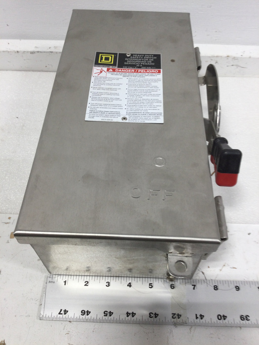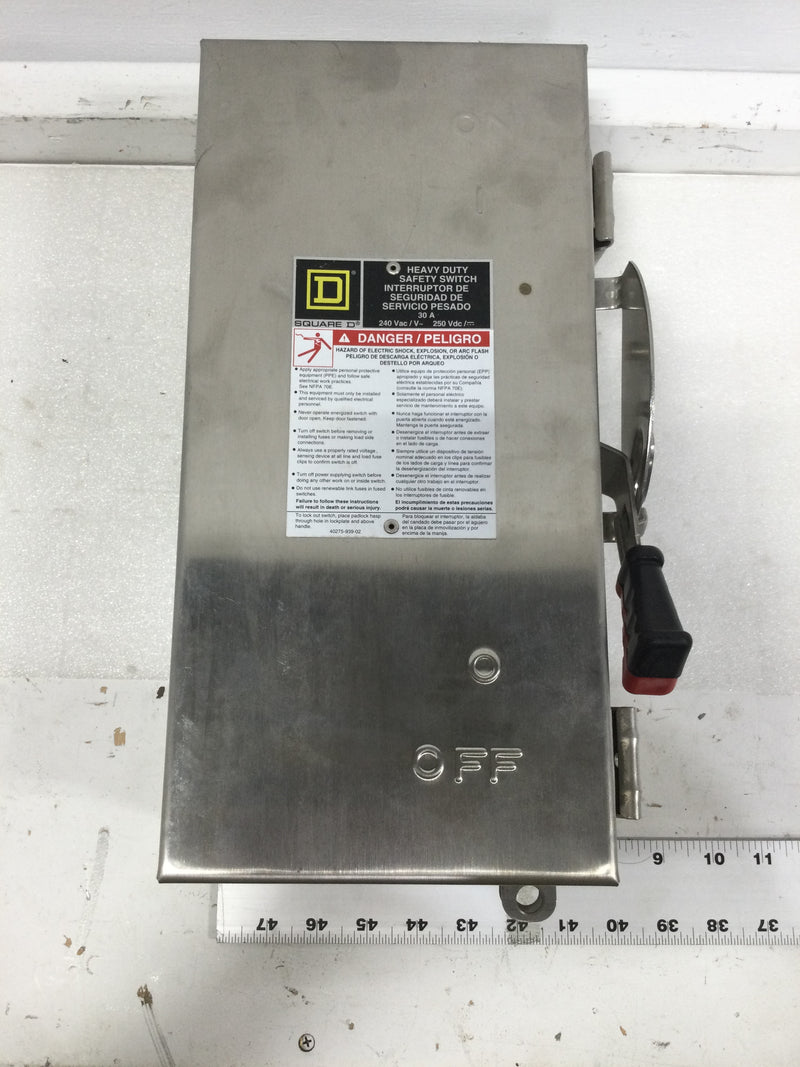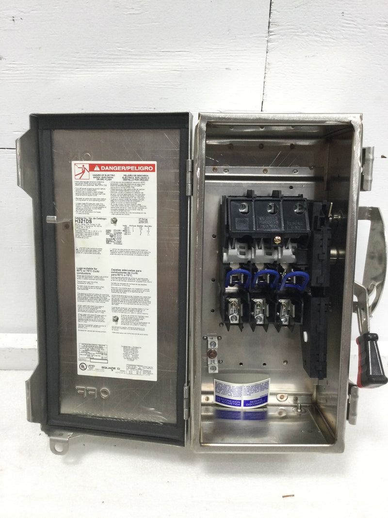 Square D  Schneider Electric H321DS  Safety switch, heavy duty, fusible, 30A, 3 wire, 3 pole, 7.5hp, 240VAC/250VDC, NEMA 4, 4X, 5, 304 stainless steel