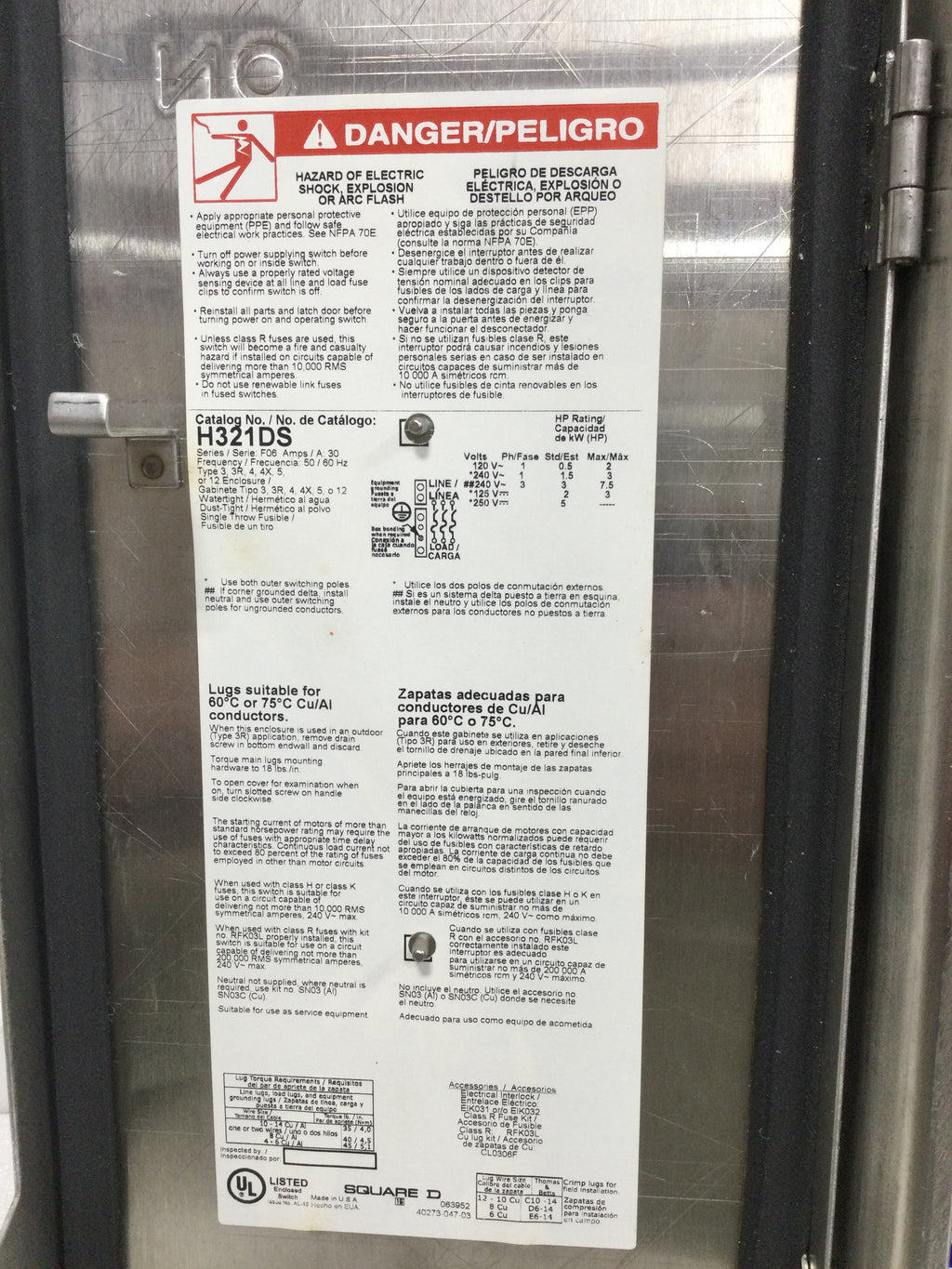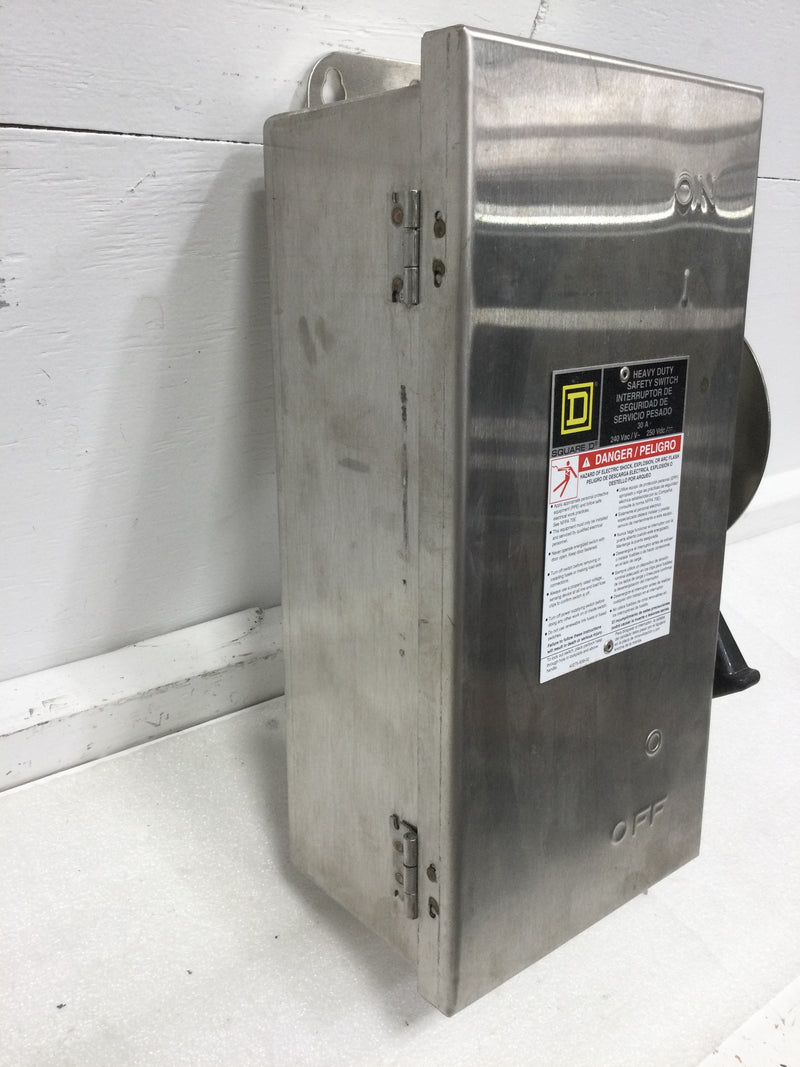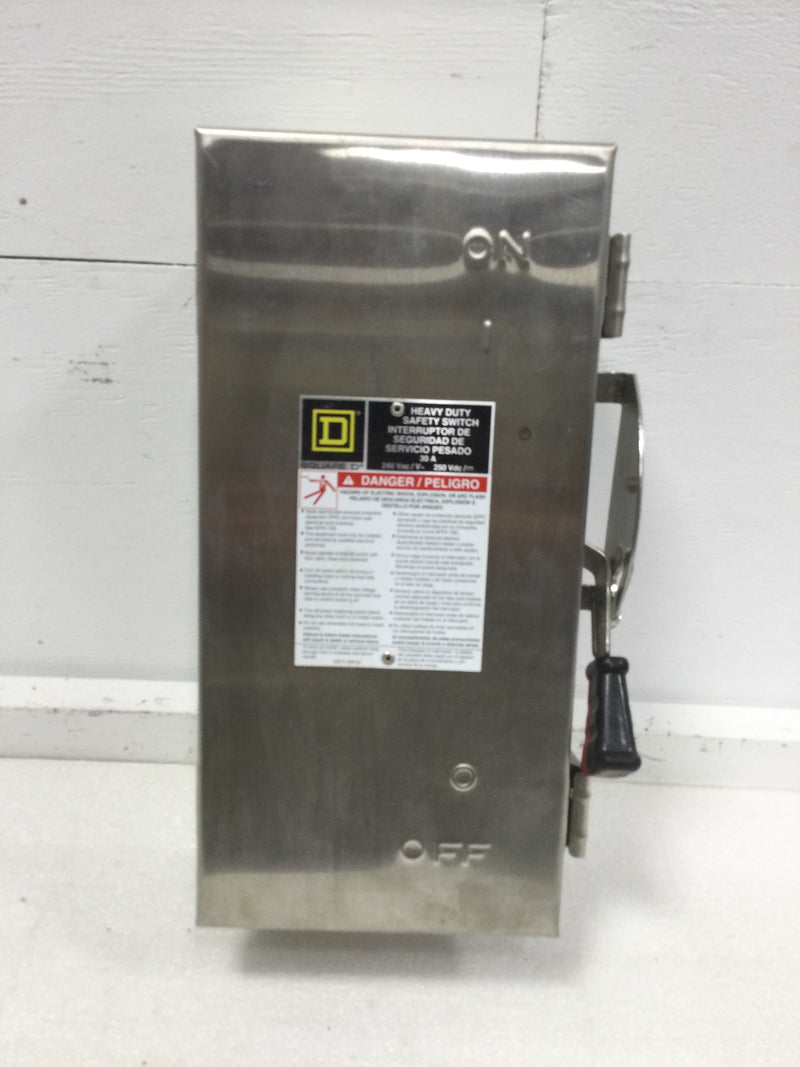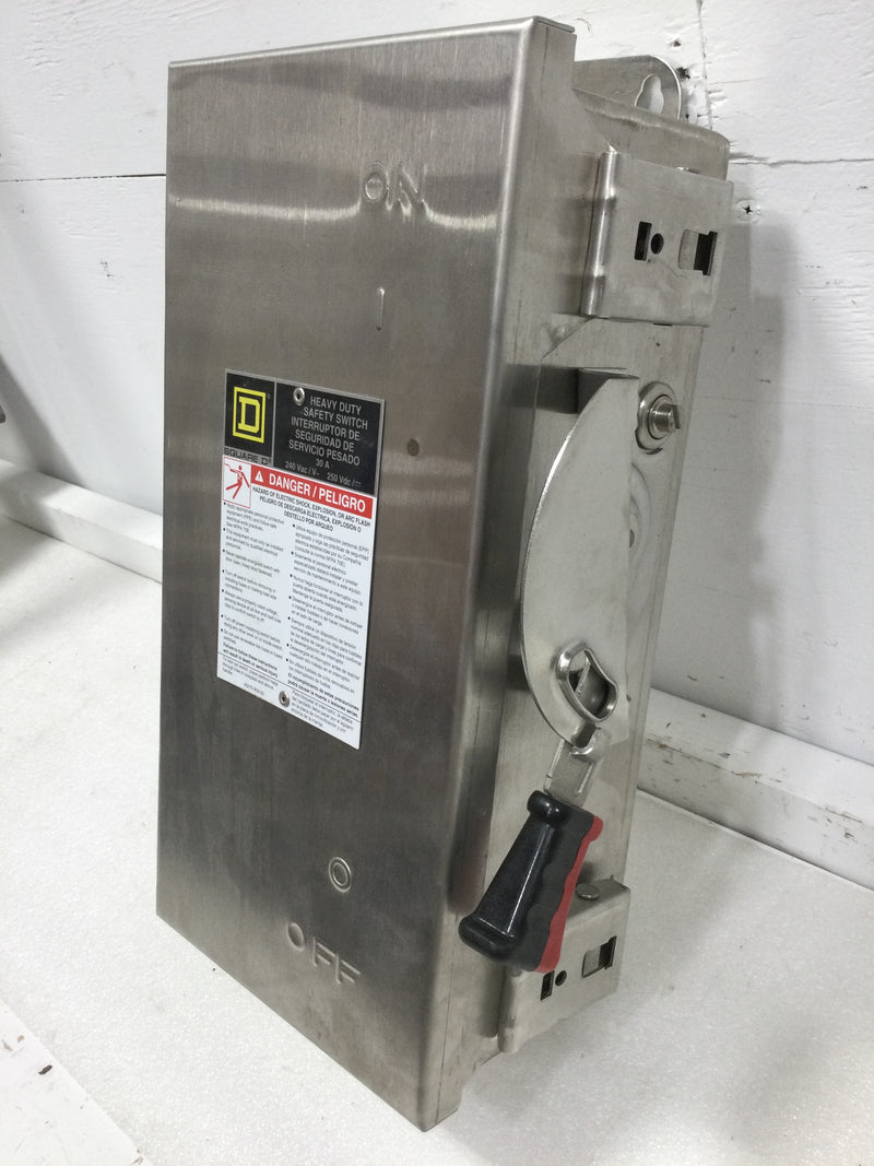 Square D  Schneider Electric H321DS  Safety switch, heavy duty, fusible, 30A, 3 wire, 3 pole, 7.5hp, 240VAC/250VDC, NEMA 4, 4X, 5, 304 stainless steel