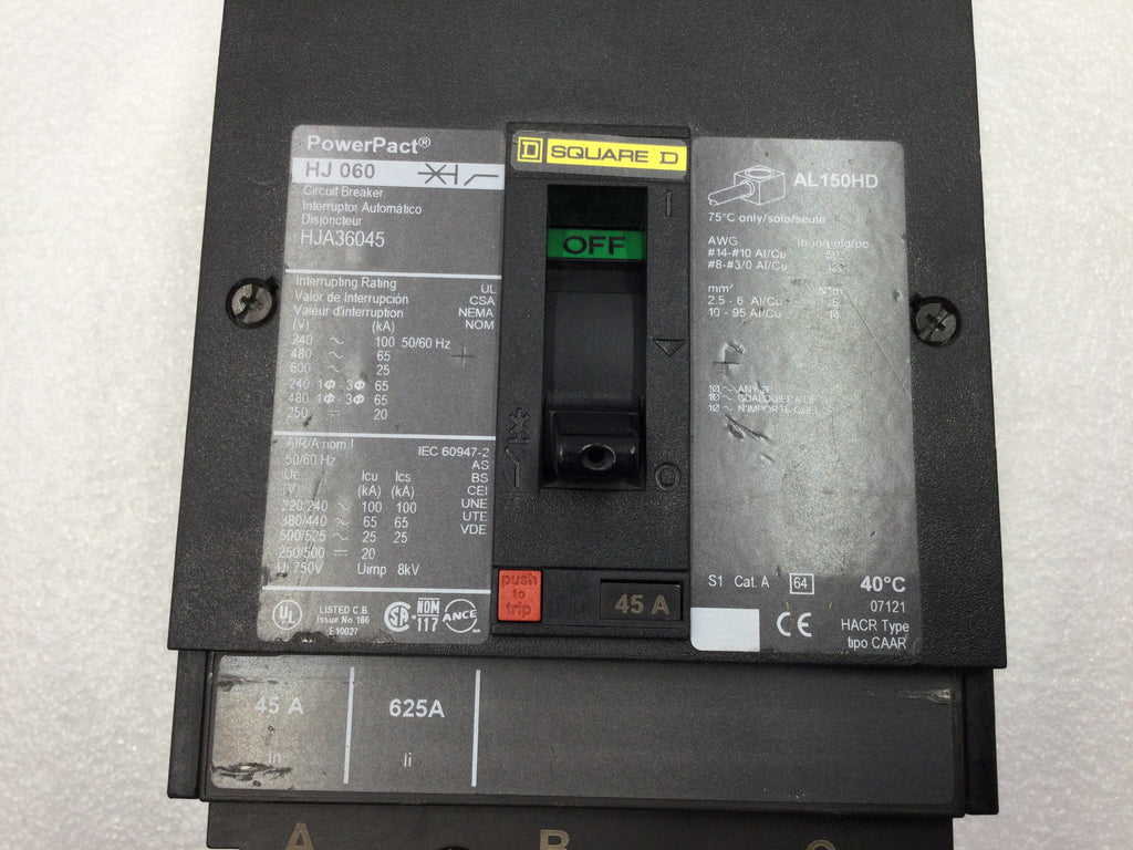 Square D HJA36045 3 Pole 45 Amp 600V HJ 060 PowerPact Circuit Breaker