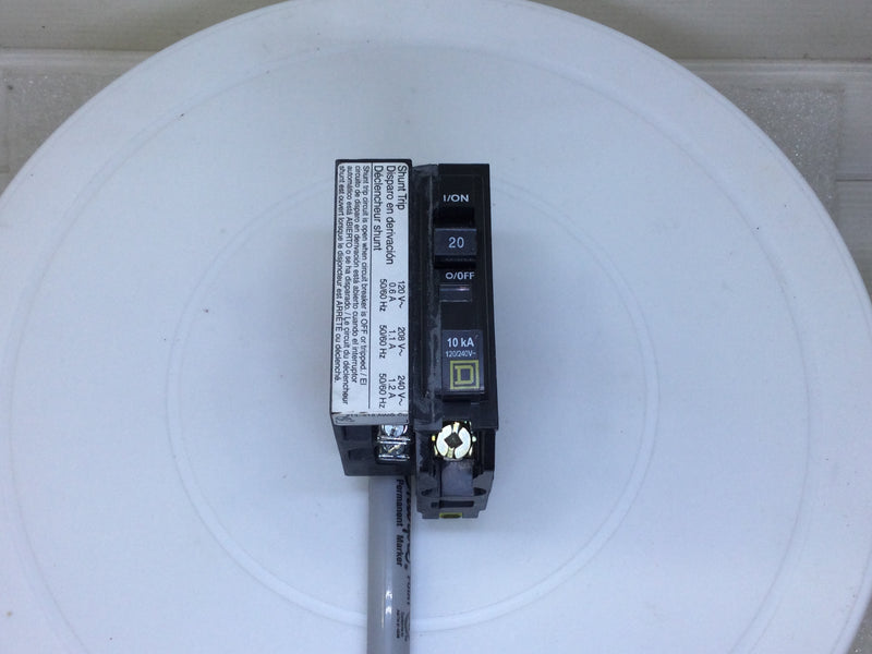 Square D QO1201021 20 Amp 1 Pole 120/240V Breaker w/ Shunt Trip