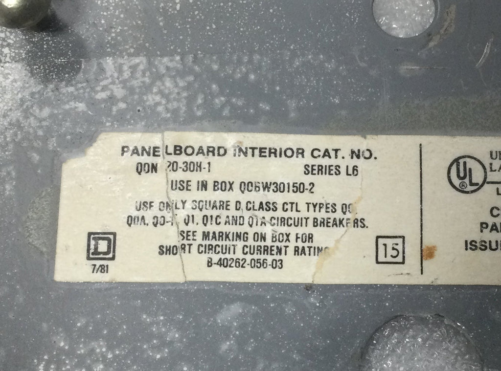 Square D QON20-30H-1 200 Amp 20 Space 120/240V Load Center Guts Only 6" X 20.5"