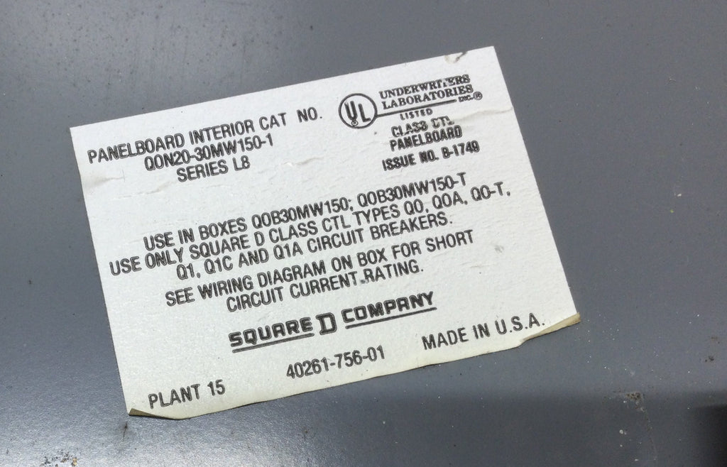 Square D QON20-30MW150-1 20 Space 150 Amp 120/240 VAC Main Breaker Load Center Guts Only 6" X 21.5"