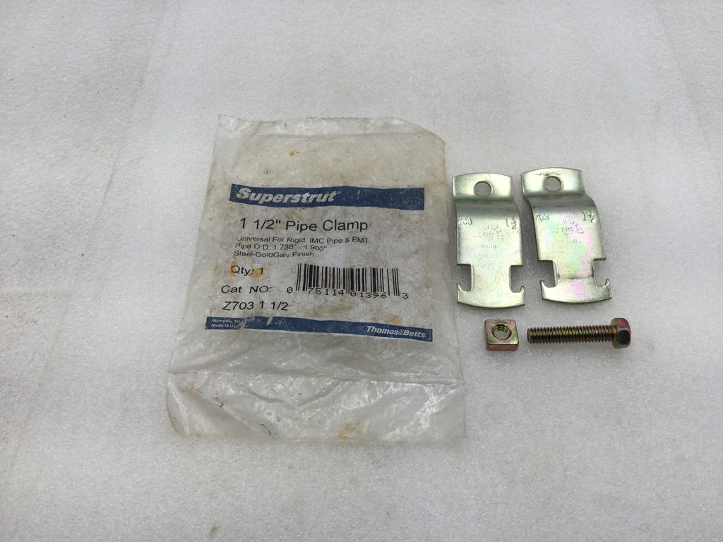 Introducing the Thomas & Betts/Superstrut Z703 1 1/2 Universal 1 1/2" Conduit/Pipe Clamp - the perfect solution for securing your 1 1/2" pipes and conduits. Its universal design allows for versatile use in a variety of applications. Trust in its durability and reliability for all your clamping needs.