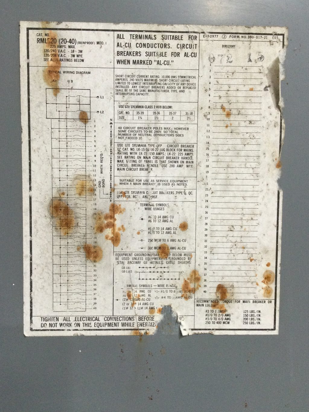 Sylvania RMLB20(20-40) 225 Amp 40 Space 120/240V Cover/Door 28 1/2" x 14 3/8"