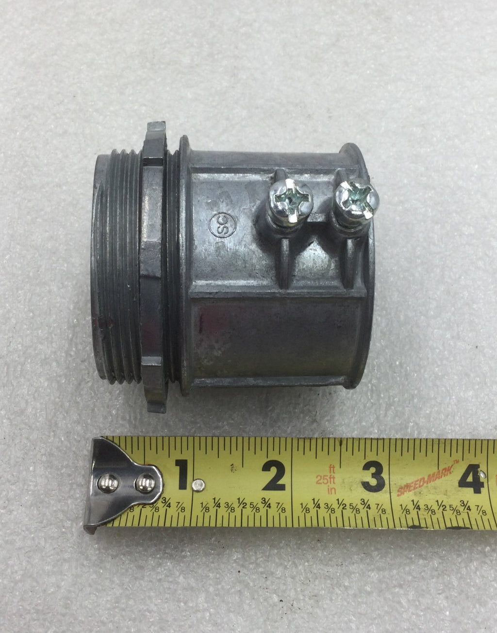 The Steel City TC-226 2" EMT Set Screw Connector is crafted from durable zinc cast, ensuring reliable and corrosion-resistant performance. Designed for secure attachment to EMT conduit, this connector provides a firm electrical and mechanical connection, ideal for professional electrical installations.