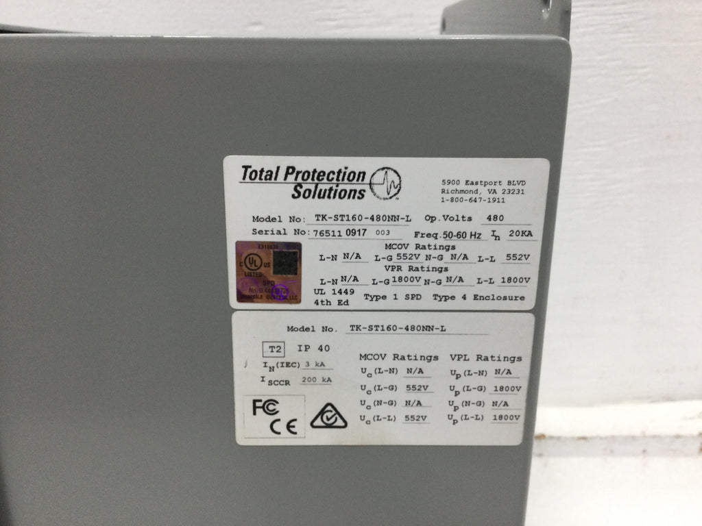 Total Protection TK-ST160-480NN-L 480 VAC 3 Pole Type 1 Surge Protection Device