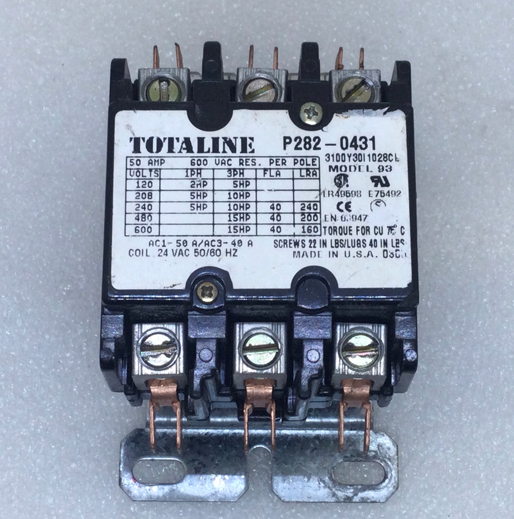The Totaline P282-0431 Contactor Coil is a 40 Amp, 3-pole unit designed for Model 93 contactors. Rated for 600V, it ensures reliable switching in HVAC and electrical control applications, providing durable performance and precise coil activation.