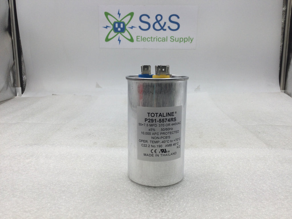 Totaline P291-5574RS 55+7.5 MFD +/- 5% 370/440 VAC 50/60Hz Round Capacitor