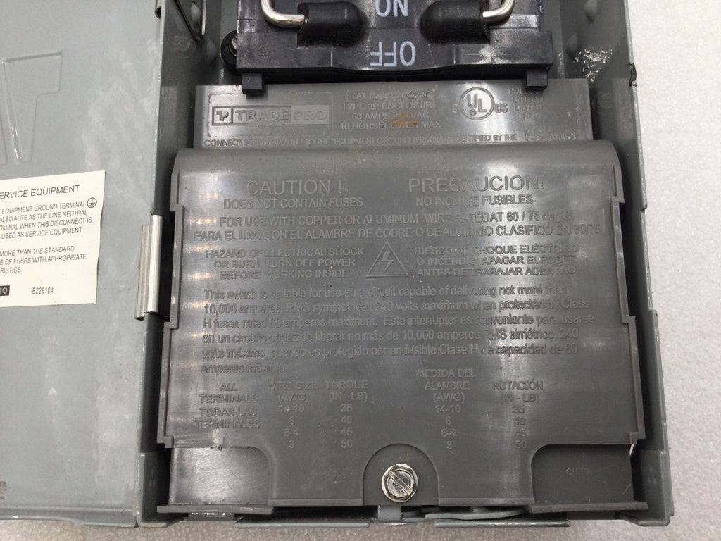 Trade Pro TP-60AMP-NF Non-Fused 60 Amp Pullout Disconnect Switch 240 VAC