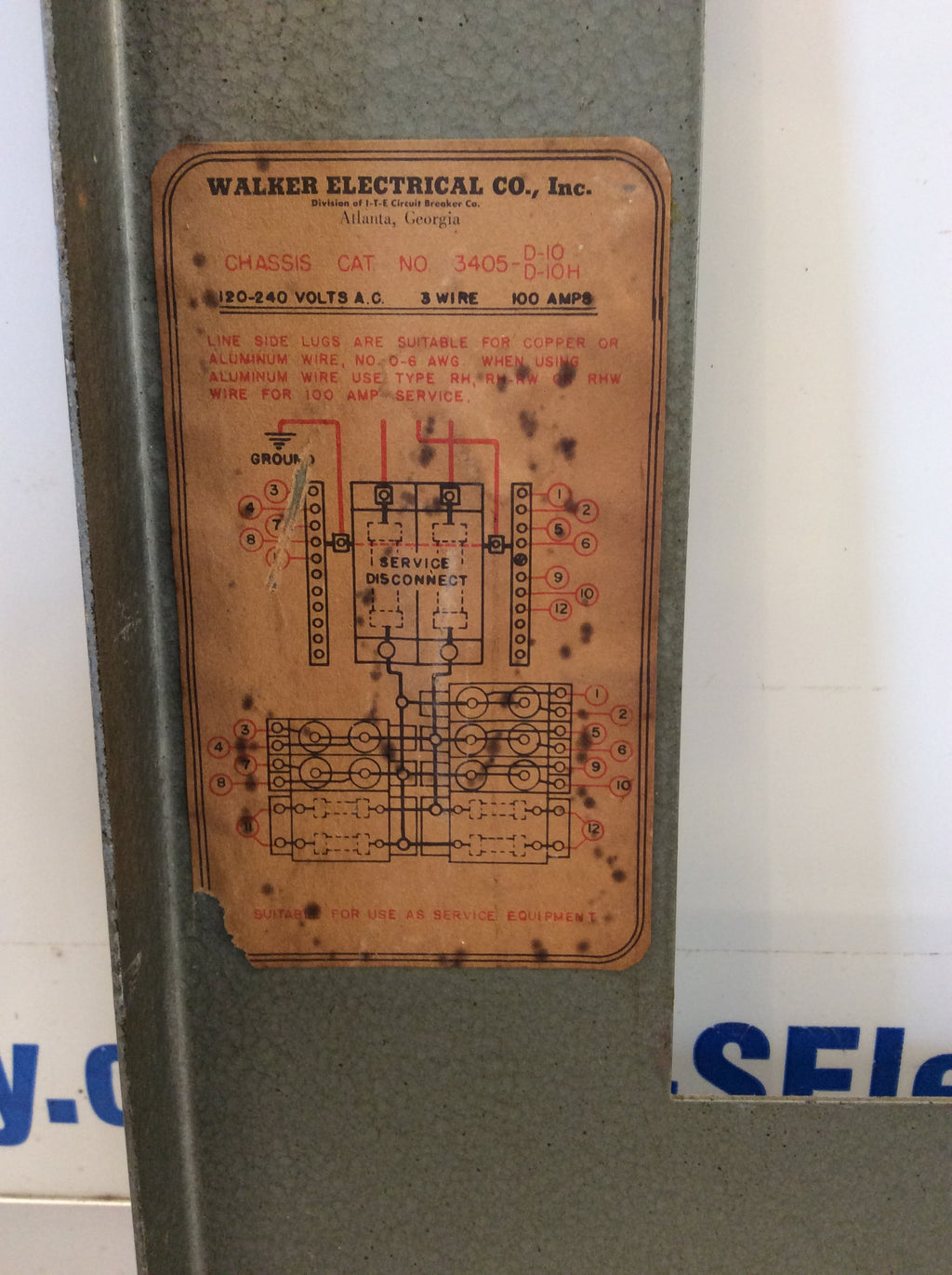 Walker S154089 Chassis #3405-D10, D-10H 120/240v 3 Wire 100 Amp Dead Front
