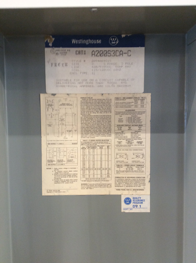 Westinghouse A200S3CA-C Style 2094A84G15 3 Phase 3 Pole Size 3 50Hp @ 600VAC Max
