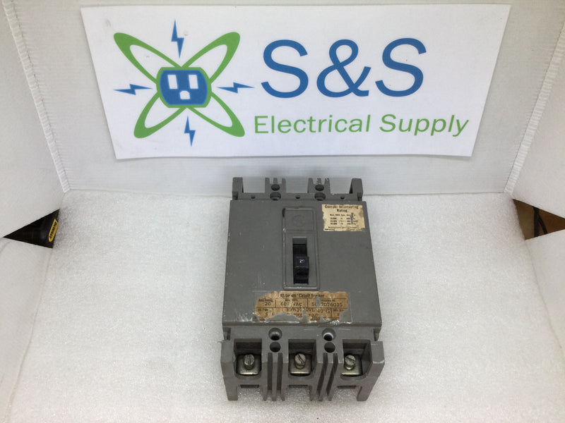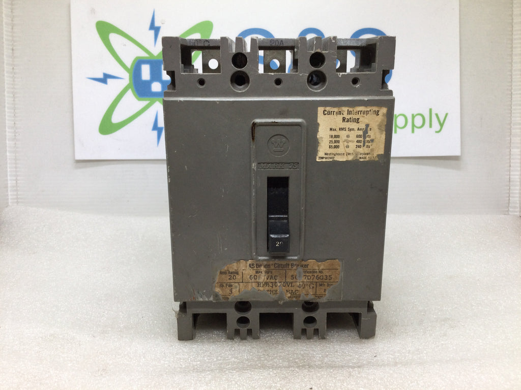 Westinghouse HFB3020VL 20 Amp 3 Pole 600V Circuit Breaker