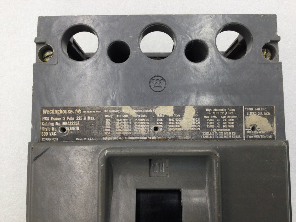Westinghouse HKA3225F 225 Amp 3 Pole 600 VAC Circuit Breaker w/ 200 Amp Trip