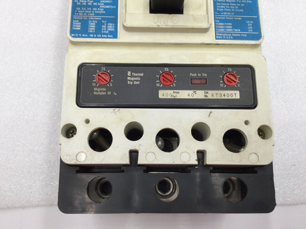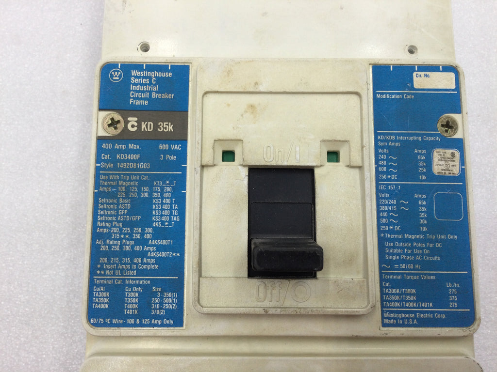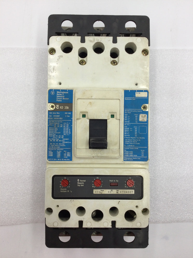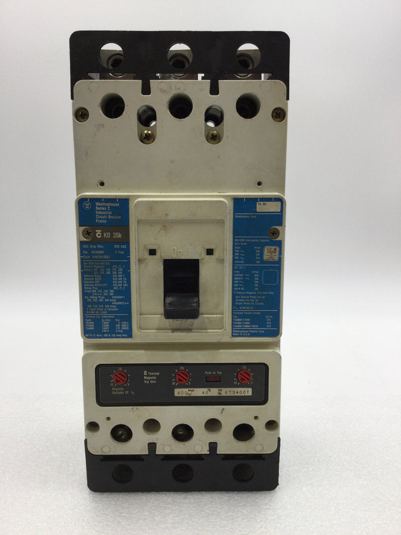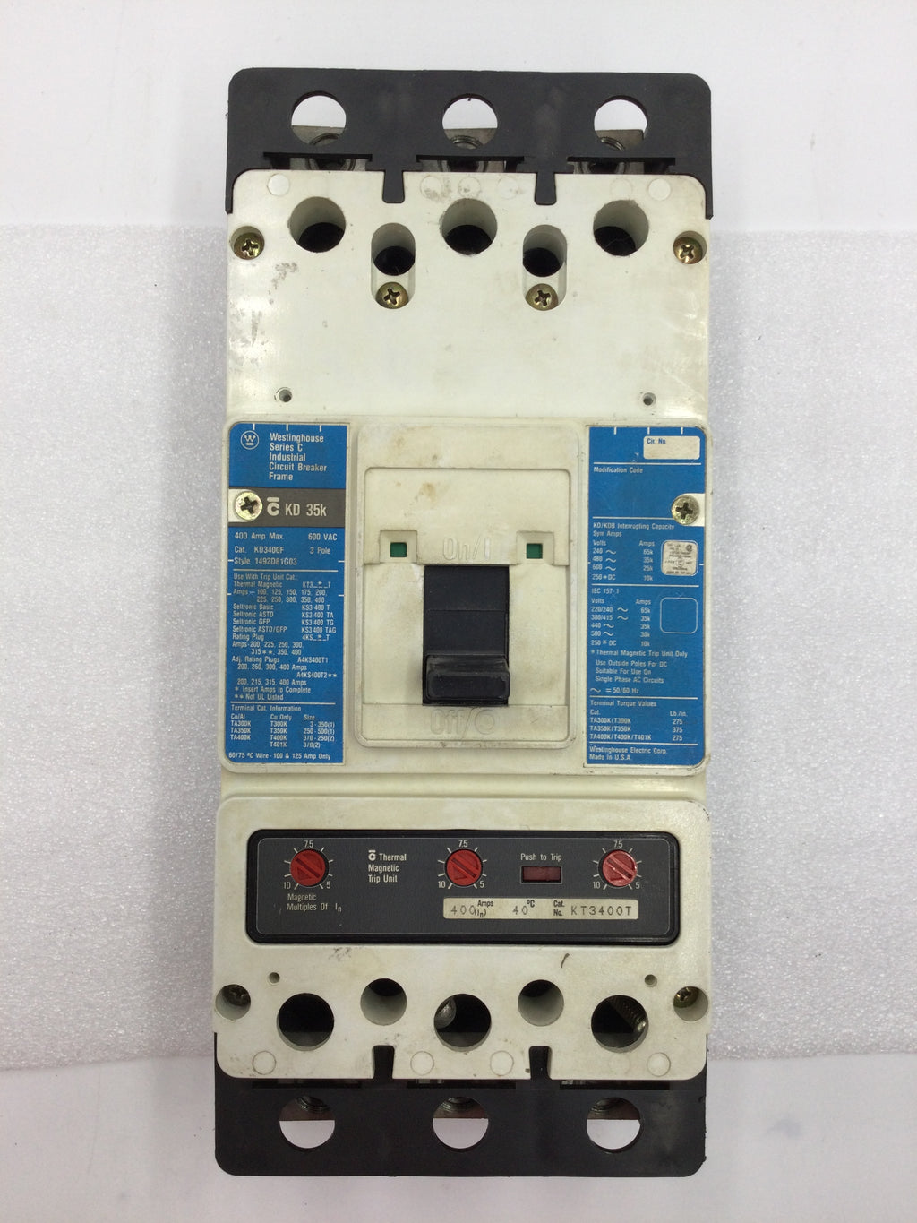 Westinghouse KD3400F 400 Amp 600V 3 Pole 400 Amp Trip KT3400T Circuit Breaker