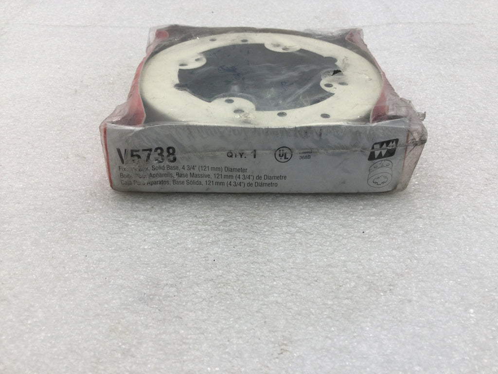 The Wiremold V5738 is a solid base fixture box engineered for the 500-700 Series raceway system. This component provides a sturdy mounting foundation for electrical fixtures and devices within Wiremold's modular wiring infrastructure. Ideal for commercial and industrial installations, it delivers reliable support and integration with standard raceway configurations.