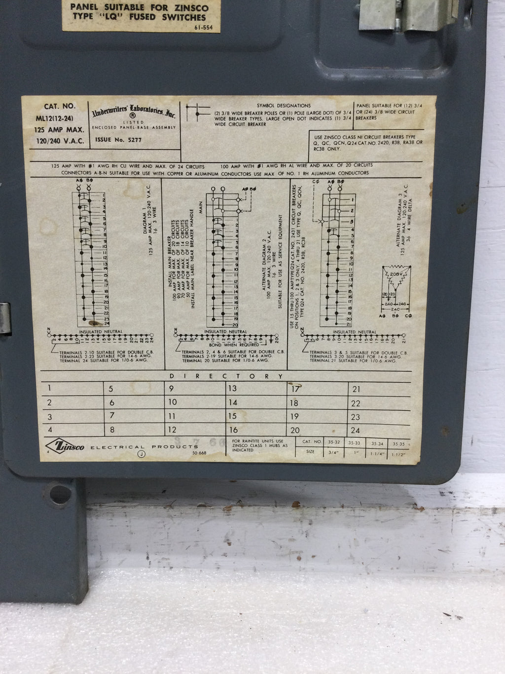 Zinsco GTE Sylvania ML12(12-24) Panel Cover/Door Only 125 Amp 124/240V 20 1/4" x 9 7/8"