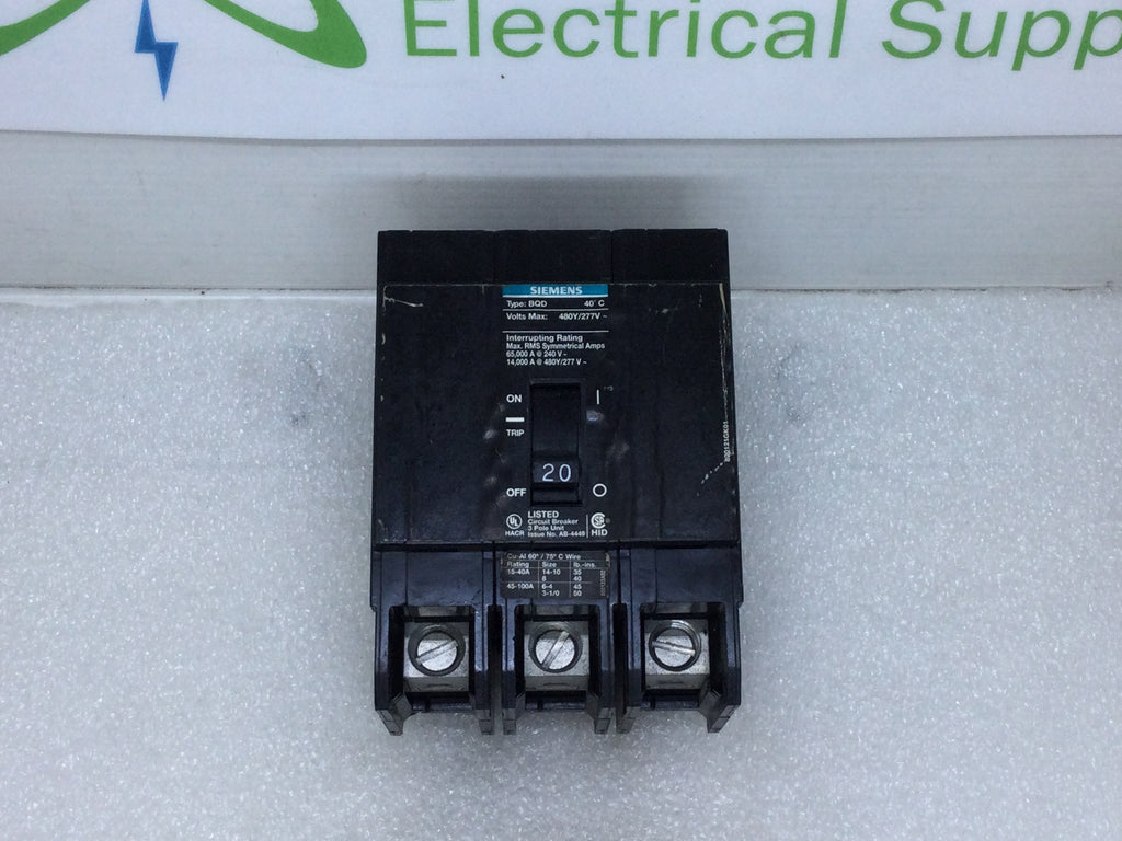 Siemens BQD320 20 Amp 3 Pole 480Y/277V Bolt-On Type BQD Circuit Breaker